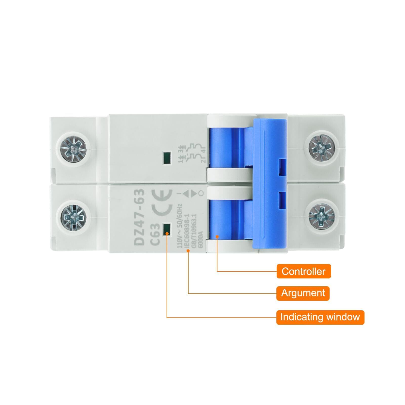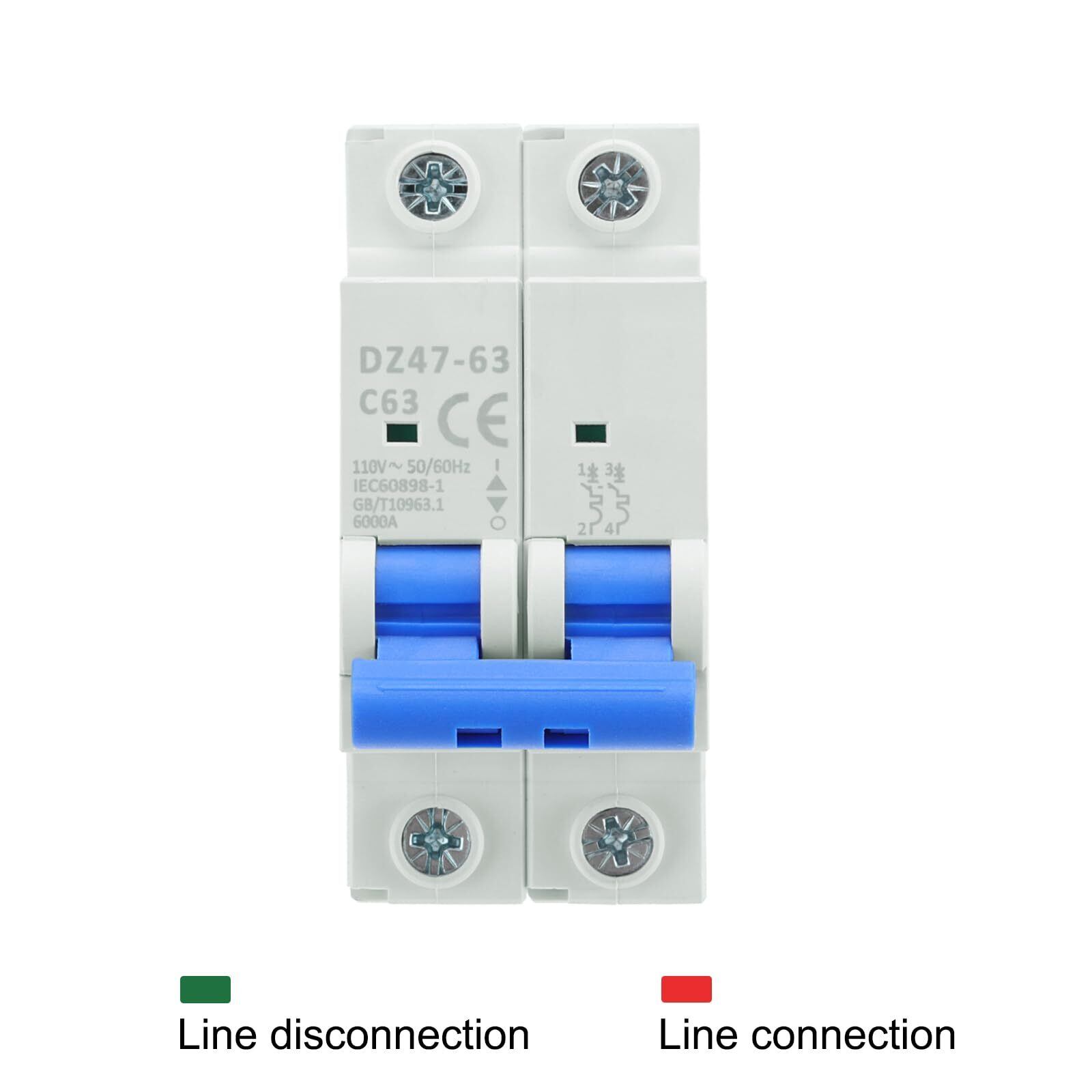 uxcell 1個 ミニチュアサーキットブレーカー 2P 63A AC 110V DZ47-63 DINレールマウント切断スイッチ サーキットブレーカー 保護 サーマル磁気トリップ 短絡保護 過負荷 青