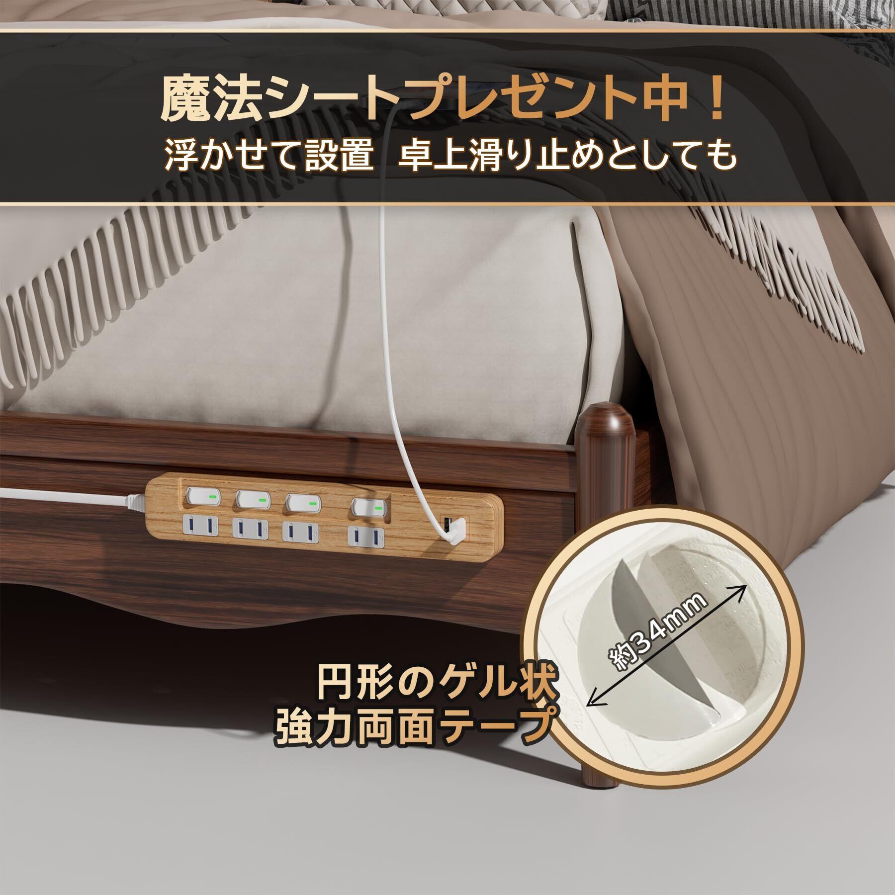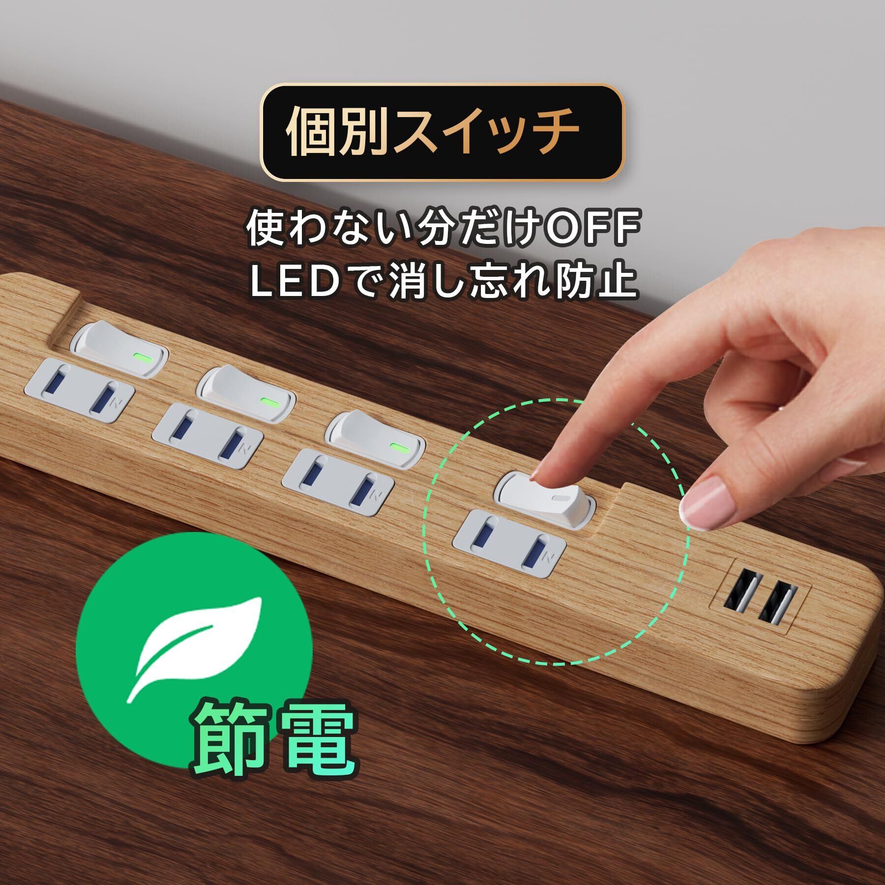 【特価セール】usb コンセント 海外対応 個別スイッチ LED ほこり防止 急速充電 雷ガード 省エネ PSE認証済(2m, 木目調)