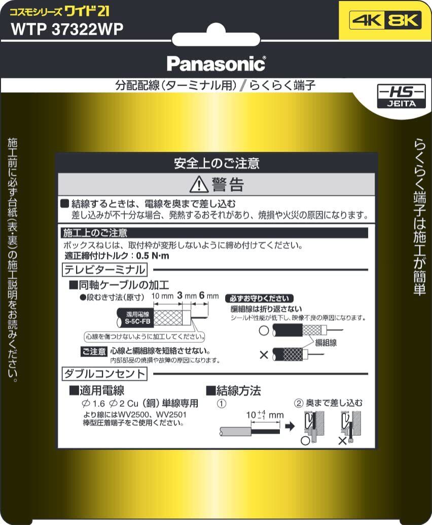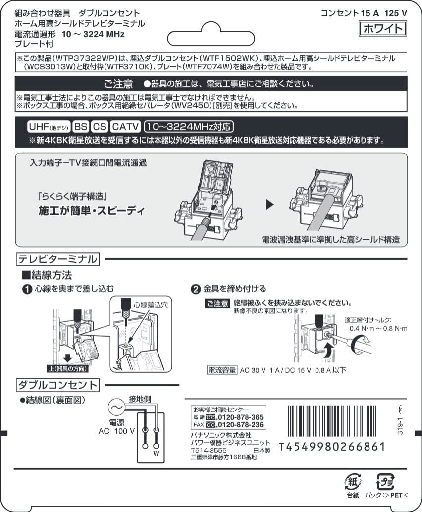 【限定セール】パナソニック(Panasonic) コスモシリーズワイド21 組み合わせ器具 (ダブルコンセント)(ホーム用高シールドテレビターミナル <10~3224MHz>)(プレート付)(ホワイト) WTP37322WP