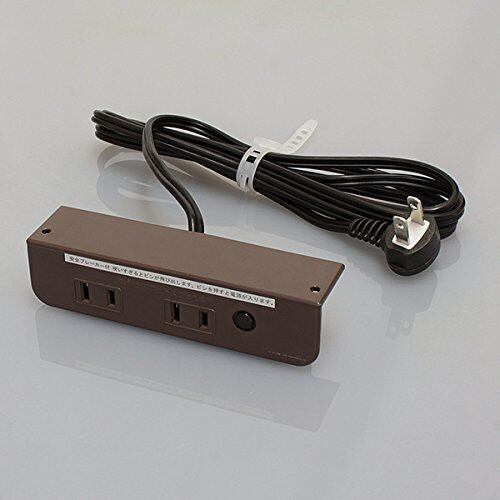 ノア 家具用コンセント(什器用) 2ヶ口コンセント 茶 VFFコード1.8m 棚下直付タイプ 1500Wまで Lプラグ ブレーカー付 NC1516NNLブレーカー付茶