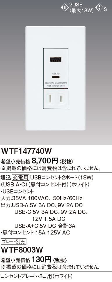【数量限定】パナソニック(Panasonic) コスモシリーズワイド21 埋込充電用USBコンセント2ポート 18W USB-A・C 扉付コンセント付 ホワイト WTF147740W