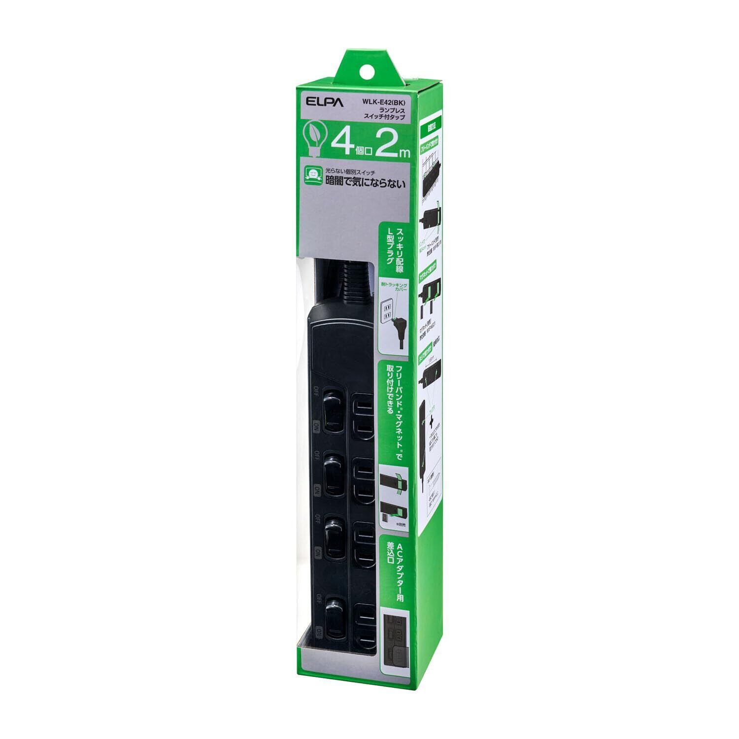 【在庫限り】ランプレスSW付タップ4P2M ブラック WLK-E42(BK)