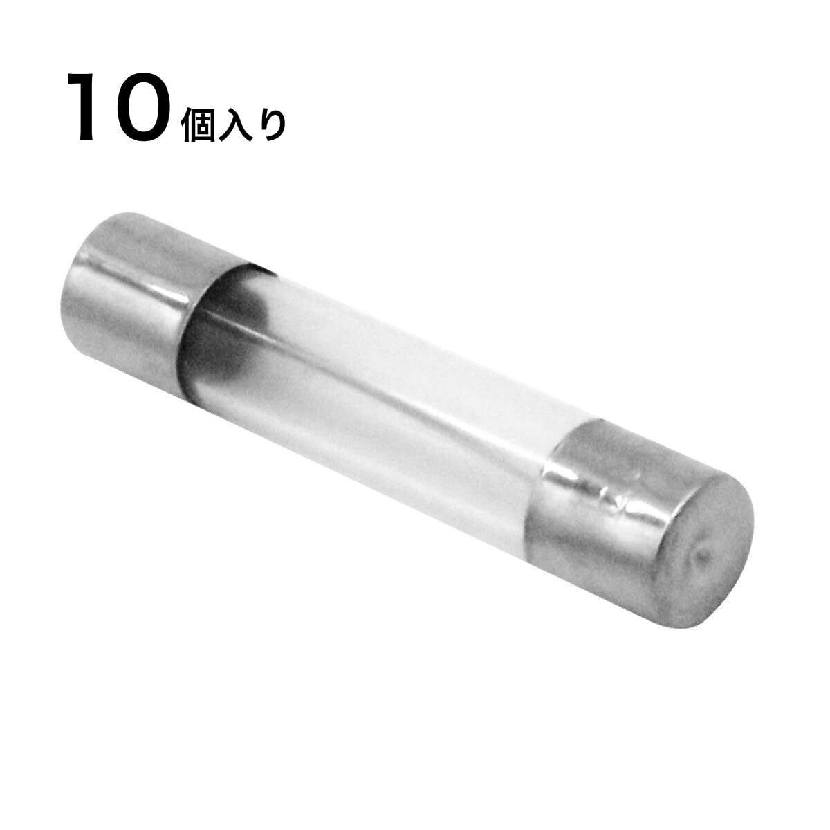 [製品仕様] ガラス管ヒューズ、サイズ:φ6mm x 30mm、定格電流:10A、ファストブロー(F)タイプで高電圧対応。10本セットで、幅広い用途に使用可能;