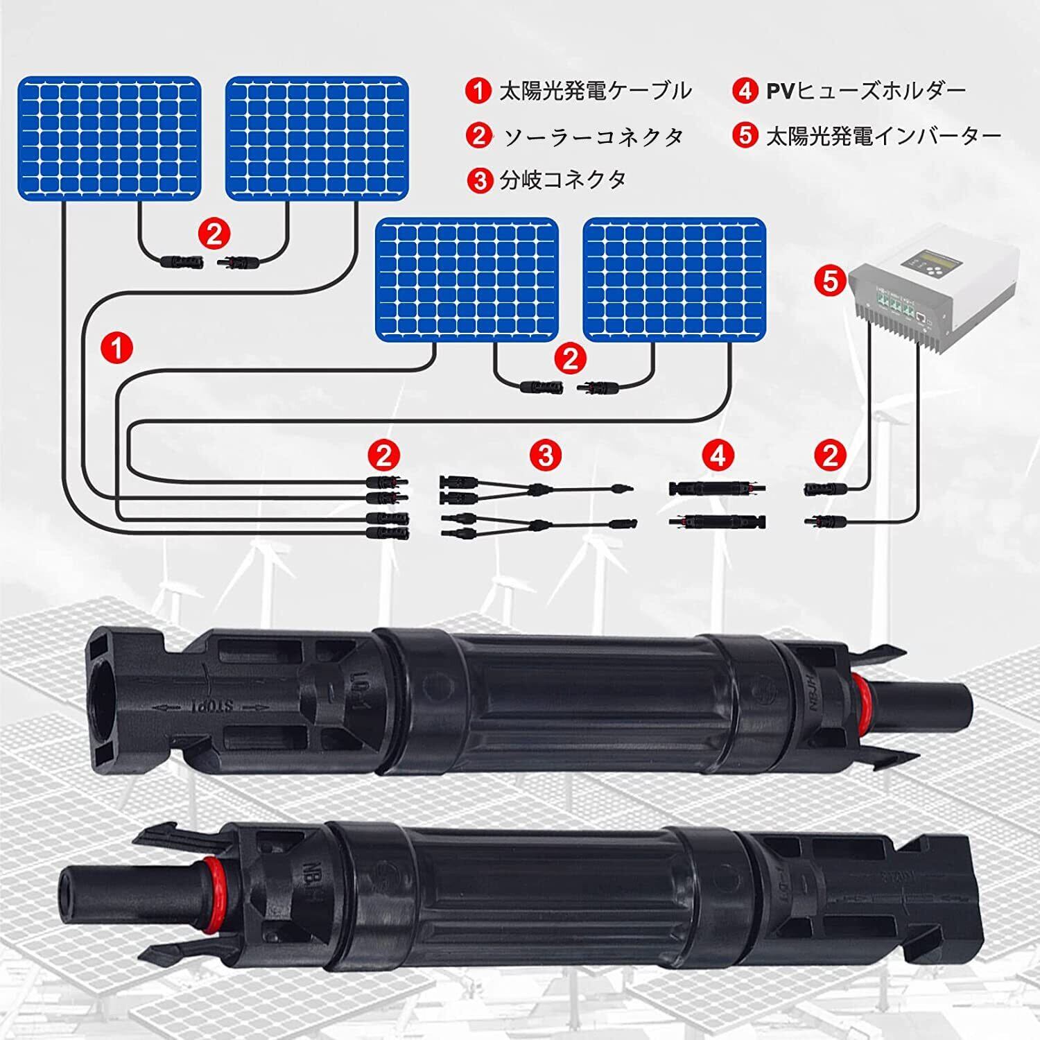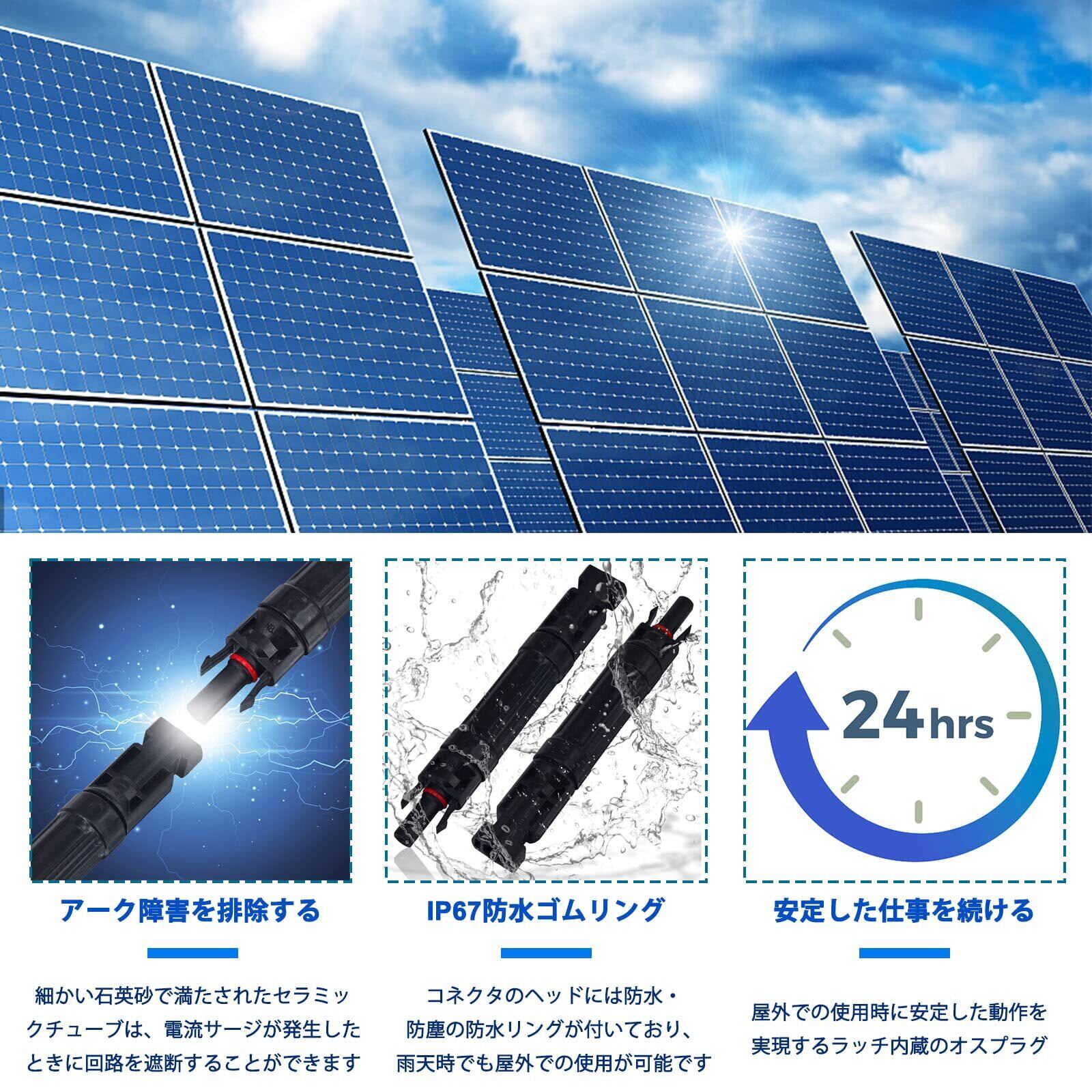 【高品質素材】ソーラーコネクタは高品質のPPO +銅素材でできており、頑丈で耐久性があり、長期間使用できます,PPOハウジングと錫メッキ銅端子により、1mΩ未満の製品の抵抗が確保され、UL94-V0難燃性の基準を満たしています。