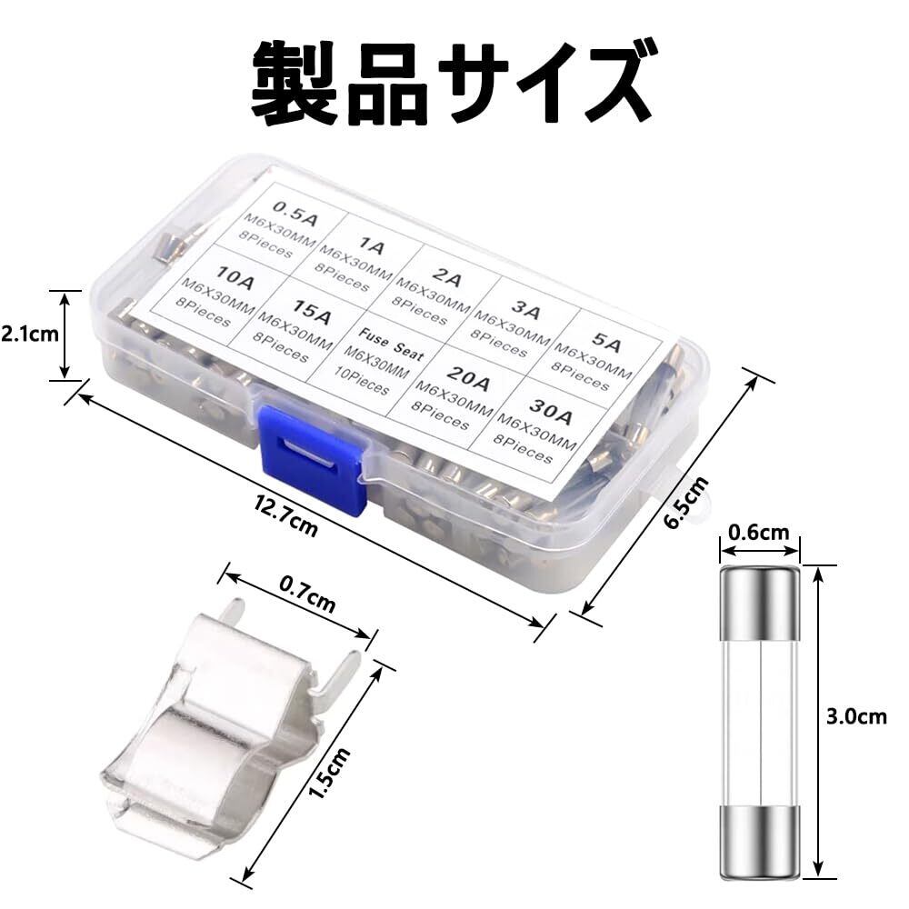 ガラス管ヒューズ 72個入り 6×30mm 0.5A-30A 速ブローガラス管ヒューズ250V ミニ管ヒューズ 透明ガラス管 ファストブロータイプ 簡単取り替え チューブヒューズプラスチックボックス付き