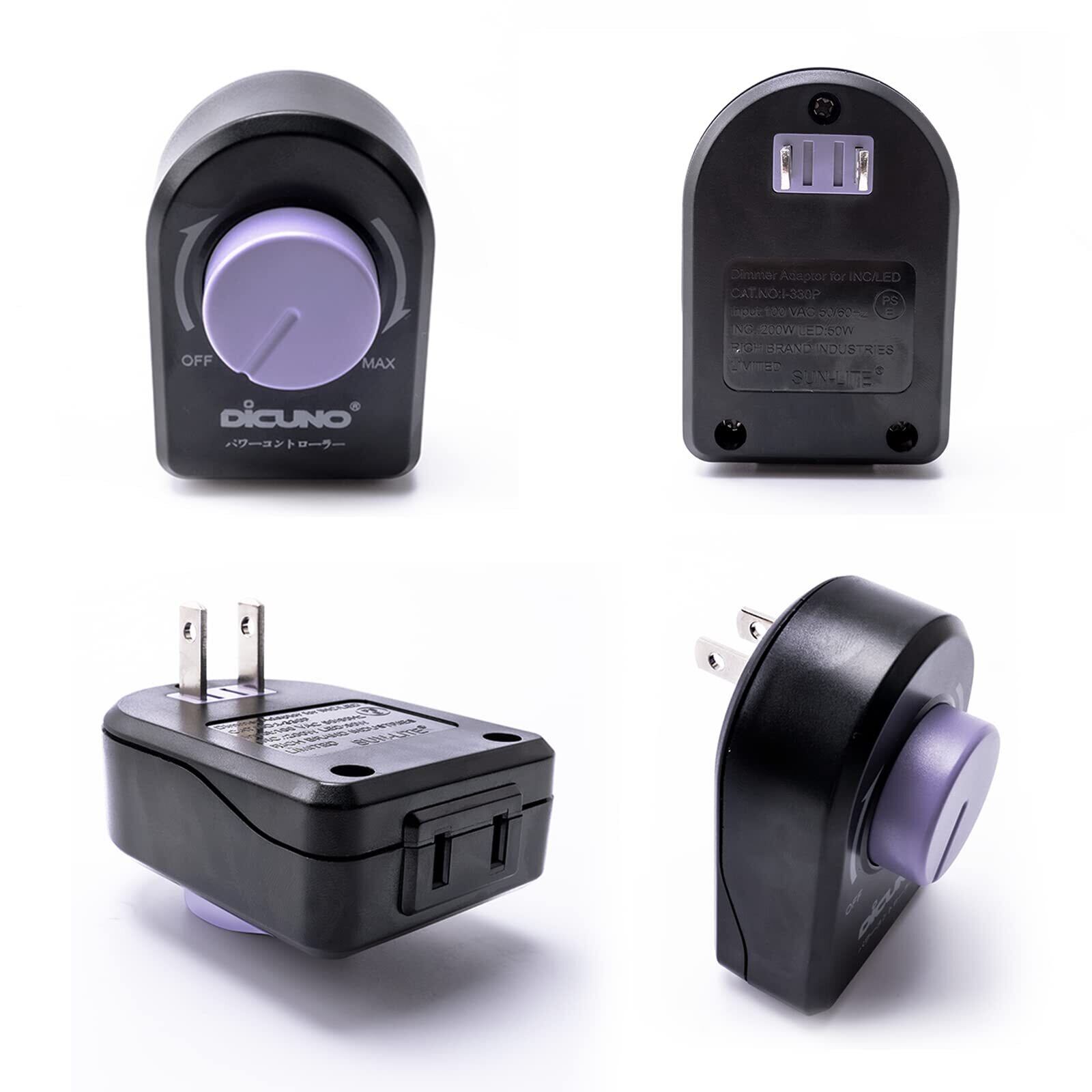 DiCUNO パワーコントローラー 光量調節 スピードコントローラー 温度調整 電気はんだごて 風量調節 扇風機 使用範囲200W以下 AC100V 調光スイッチ(LED電球 、CFL 、白熱灯) 黒い 1個入