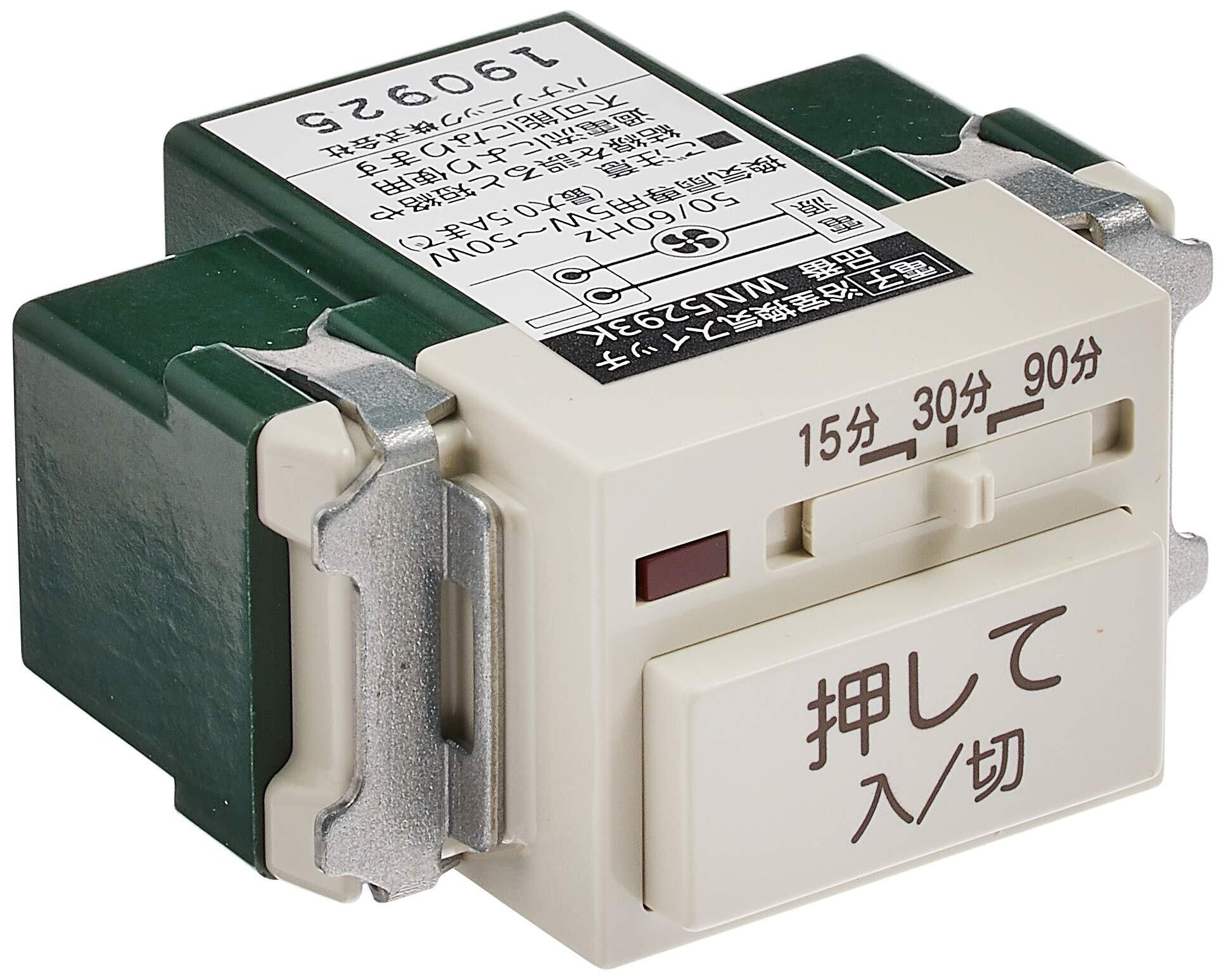 ●電子浴室換気タイマスイッチ<br>●90分・30分・15分<br>●適合負荷:換気扇専用 5~50W用<br>●0.5A 100V AC<br>●連続ONはできません<br>●2か所操作はできません<br>●フルカラー1個モジュールですので1個用のスイッチボックスに組み合わせ取付可能。<br>●換気扇が回っているとき点灯します。