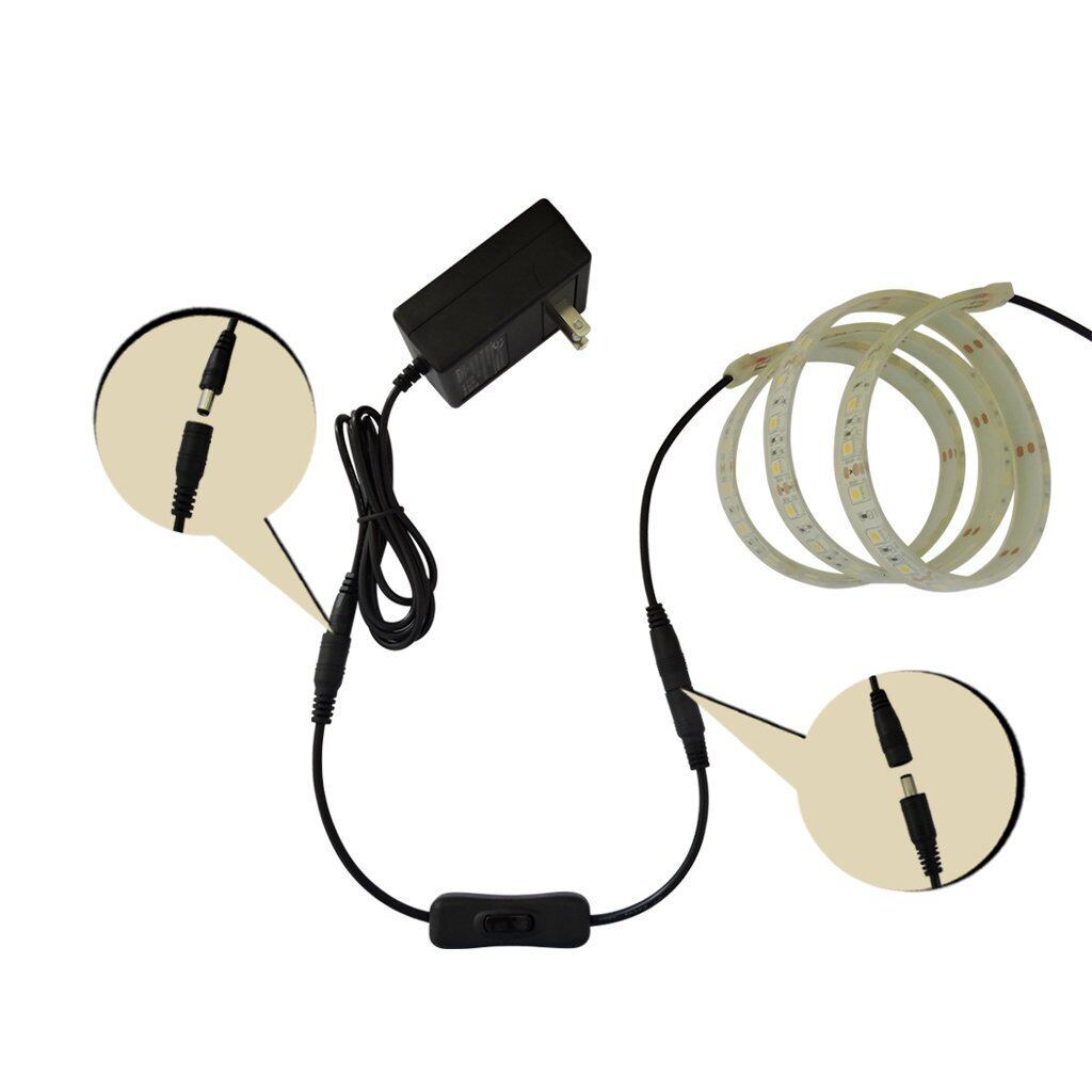 DCインラインスイッチ。ON/OFF機能付き。DCジャックプラグのサイズ:5.5mm×2.1mm。ケーブルの長さ:30cm。