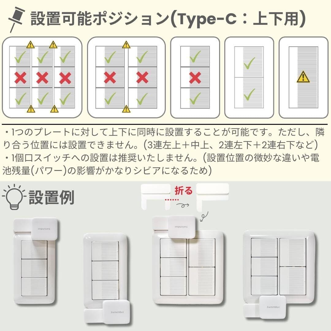 【2025最新】[SmartBASE] スマートホームデバイス用取付台 ドライバー一本で取付 空振り防止 動作安定化 取付枠 取付ベース コスモワイド21などの照明スイッチに適合 (Type-C:SwitchBotサイズ上下取り付け1個用, 3Dプリンター製ホワイト)