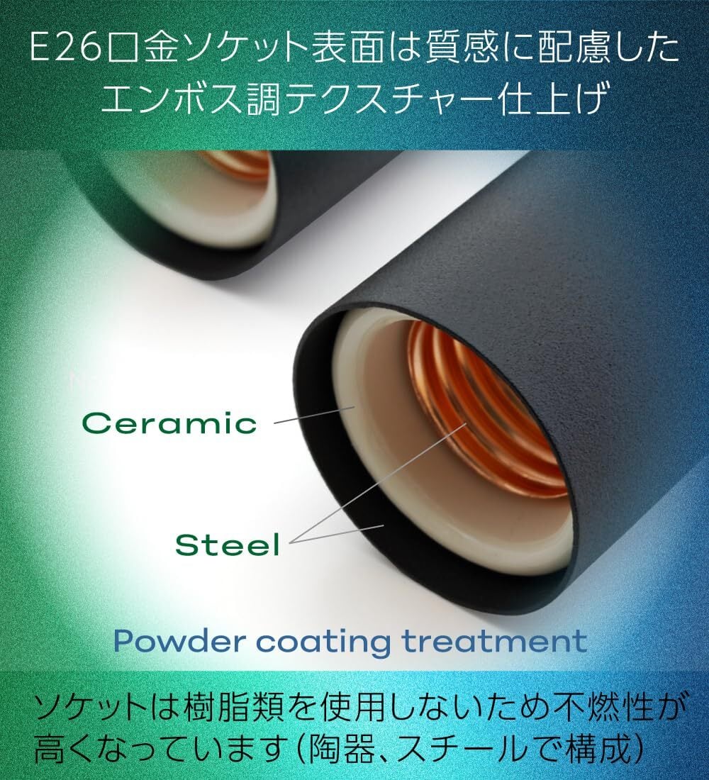 ライト側の口金は陶器とスチール製で耐熱性、不燃性があります。LED60W以下をご利用ください。