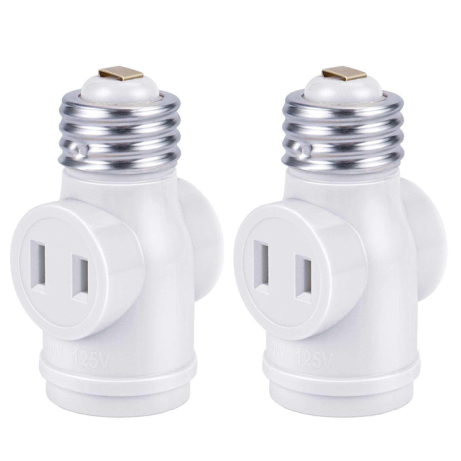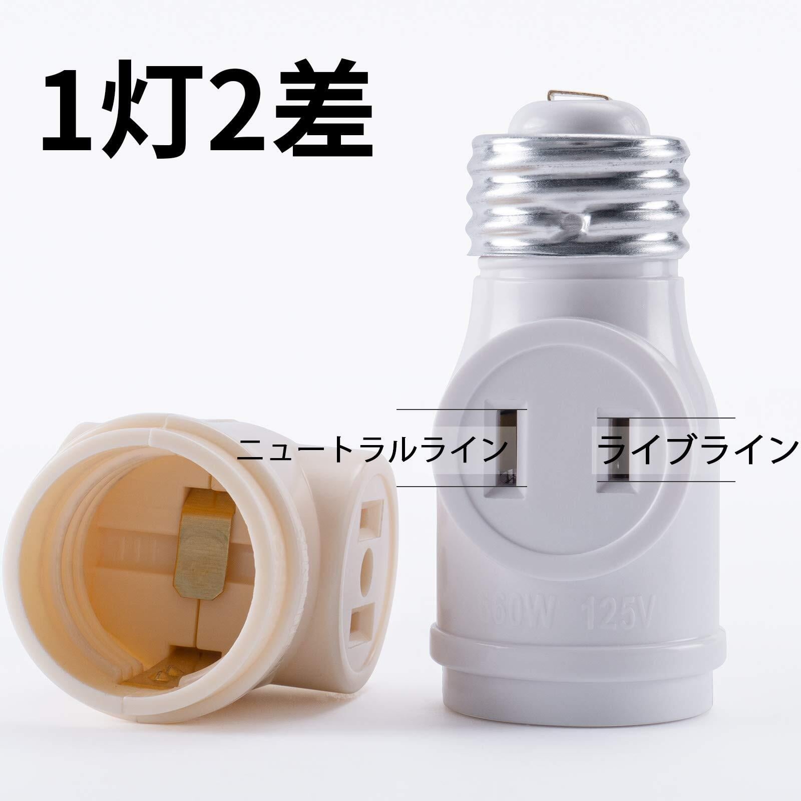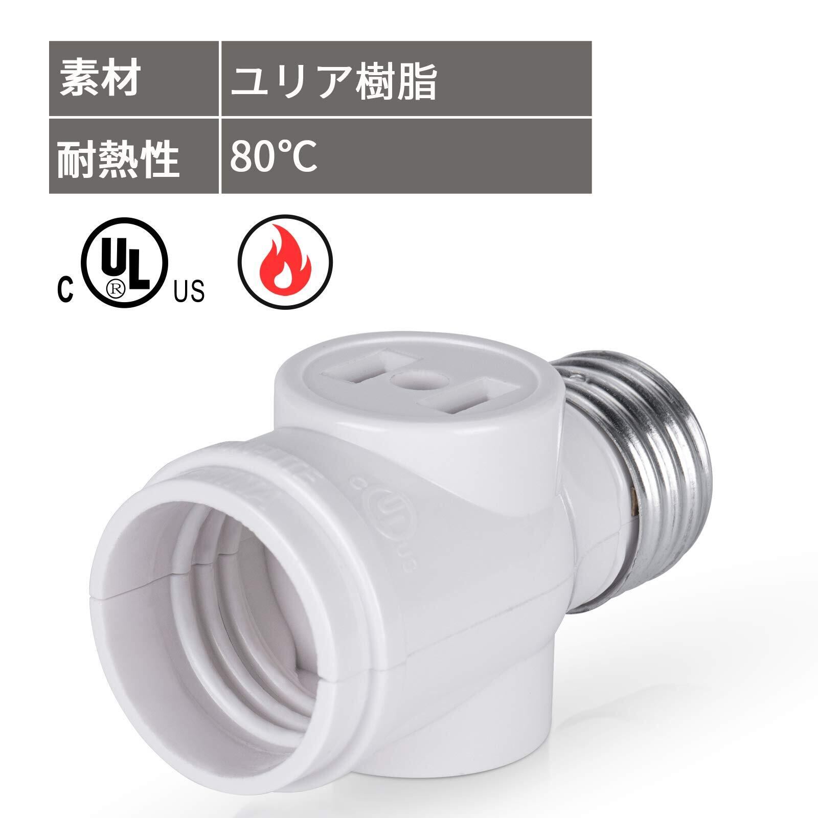【人気商品】DiCUNO 1灯2差ソケット E26用ソケット+コンセント2口 白 2個入