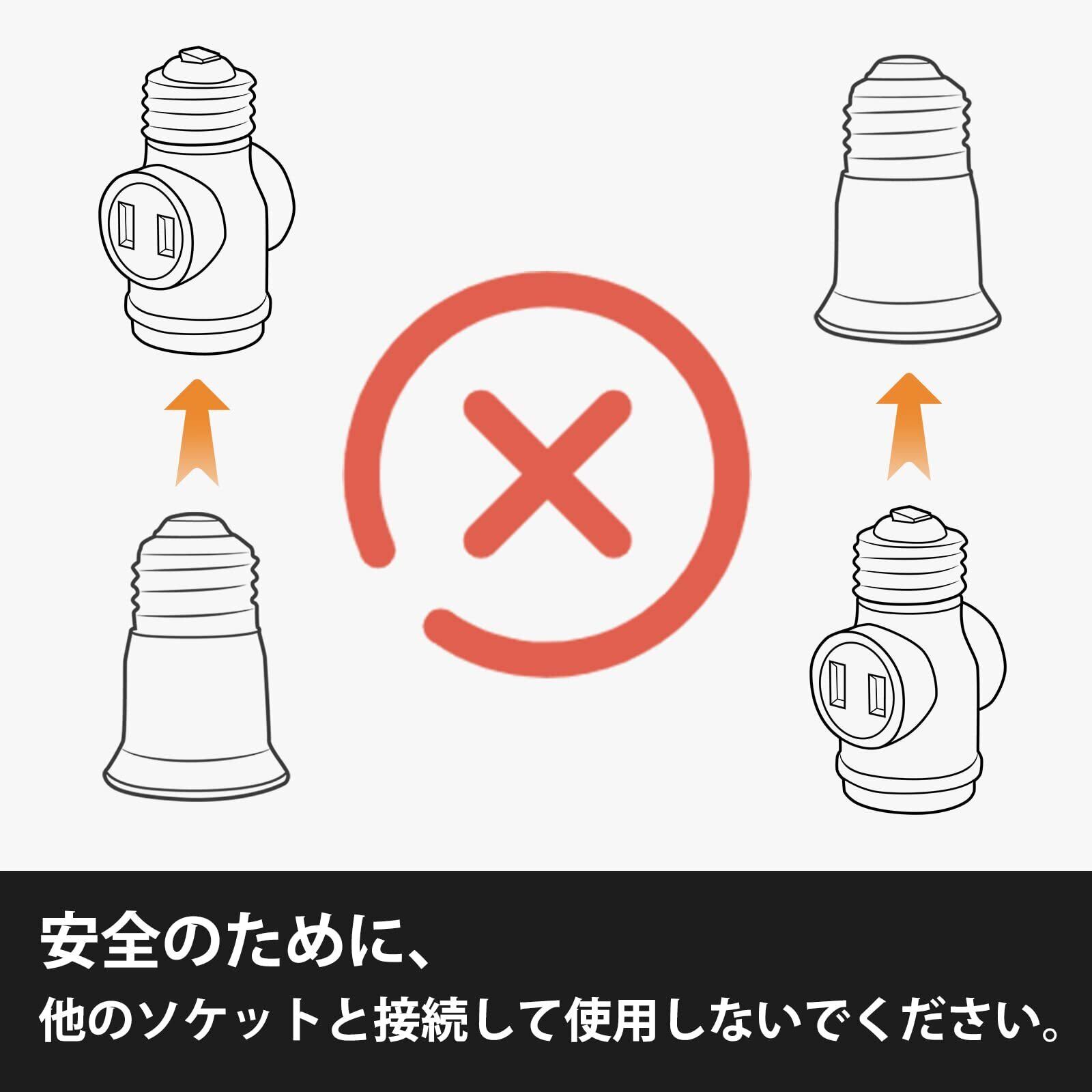 品目:E26口金ソケットから電球1灯とコンセント2口に変換するアダプターです。