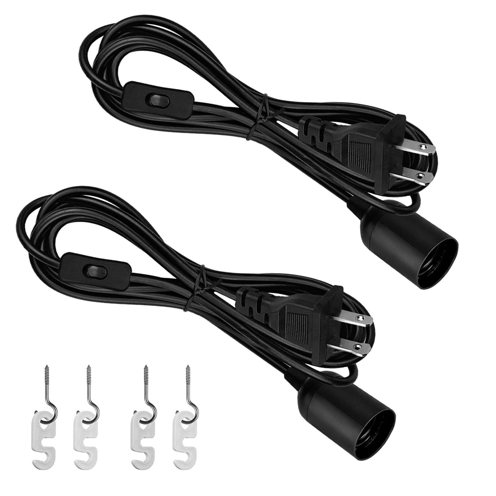 【2.5m e26 ソケットPSE認証】LUNKESI 電球ソケット e26 ソケット コンセント コード付きソケット 吊り下げライト コンセント 中間スイッチ付き E26口金 照明用 2個 黒