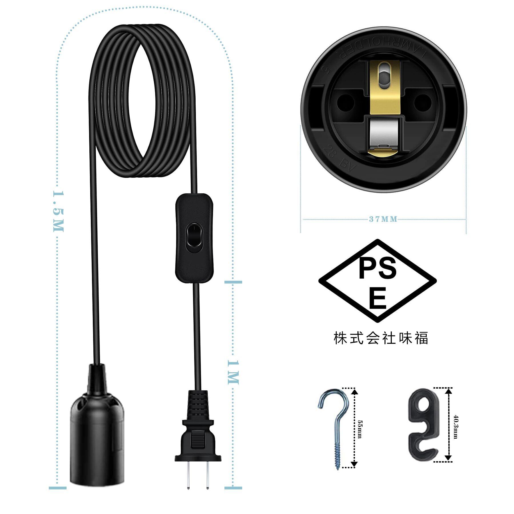 商品仕様: ●耐熱温度: 90℃ ●入力電圧:125V ● パッケージ数:2個セット ●本体素材:高品質のPBT ●口金:E26 / E27 ●口金コード長:約2.5m ●最大ワット数:60W, 電球を含まない. この電球ソケットには防水機能がありません
