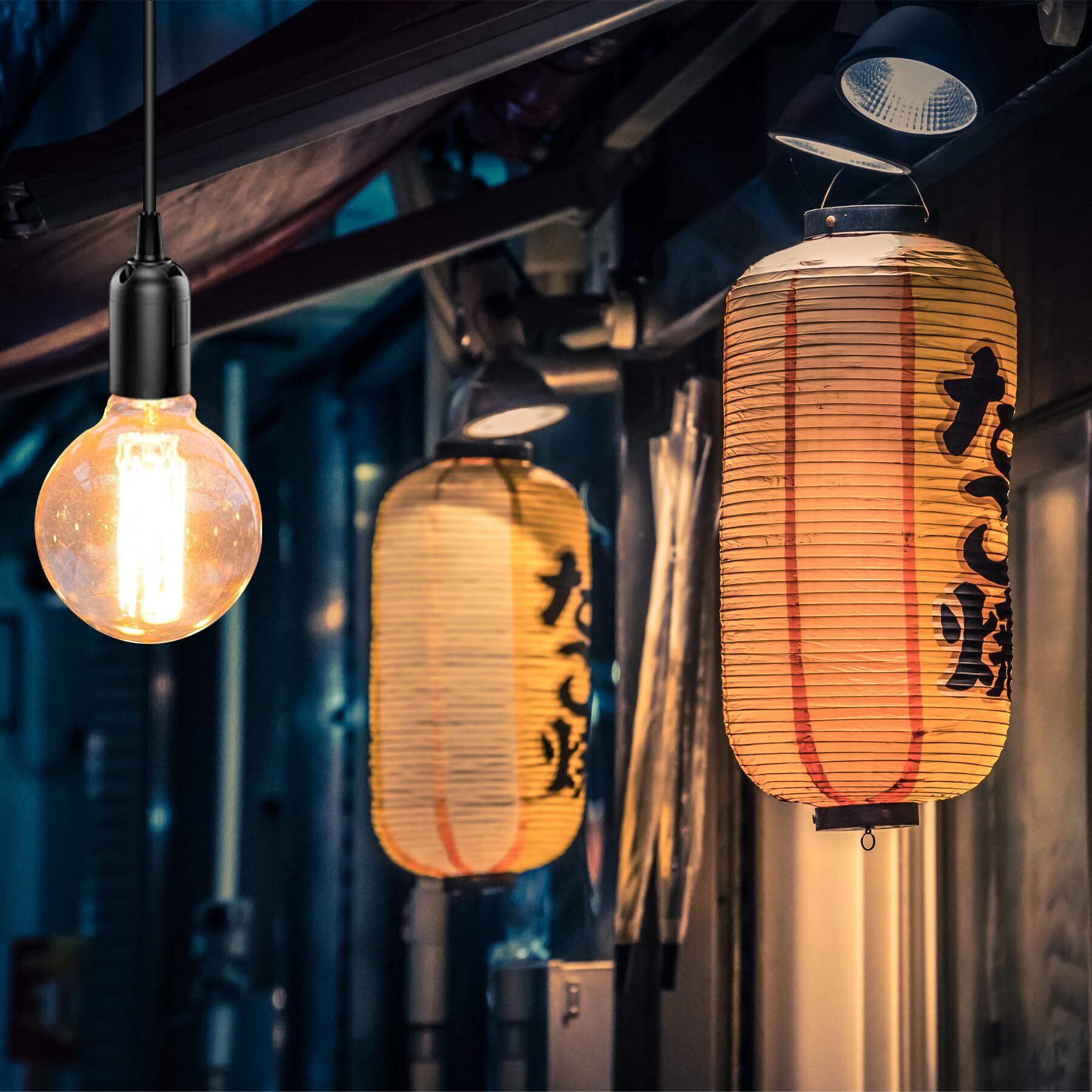 多用途コンセント 照明: このE26口金ソケットは、標準E27/E26ソケットに対応し、吊り下げ照明をはじめとする様々な用途に最適です。付属のコード設計により、E26/E27ソケットの位置を自由に調整でき、設置場所を気にすることなく、使い勝手も抜群です。寝室、リビングルーム、キッチン、スタジオ、地下室など、あらゆる場所で明るく照らし、快適な空間を提供します