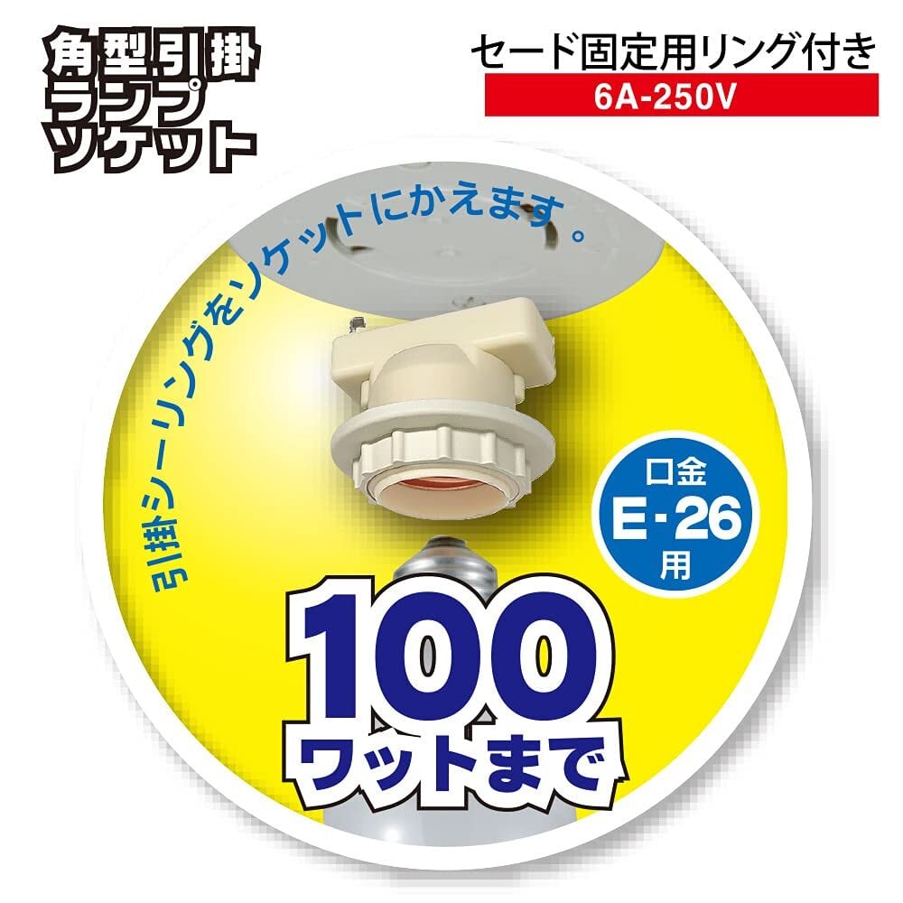 【 特 長 】● 引掛シーリングをソケットにかえます● セードをリングで挟み込んで固定できます● 口金E-26用 100ワットまで● 照明用