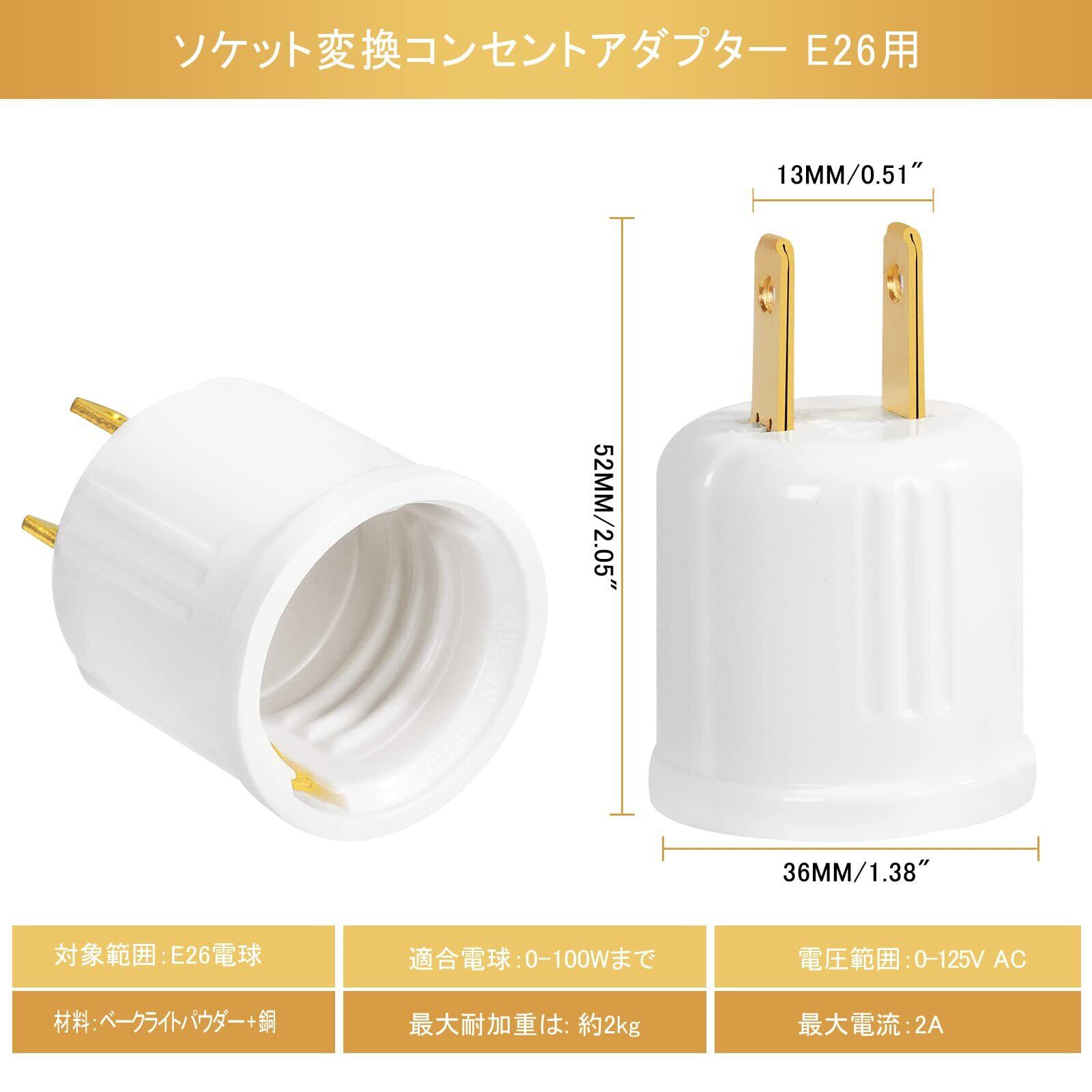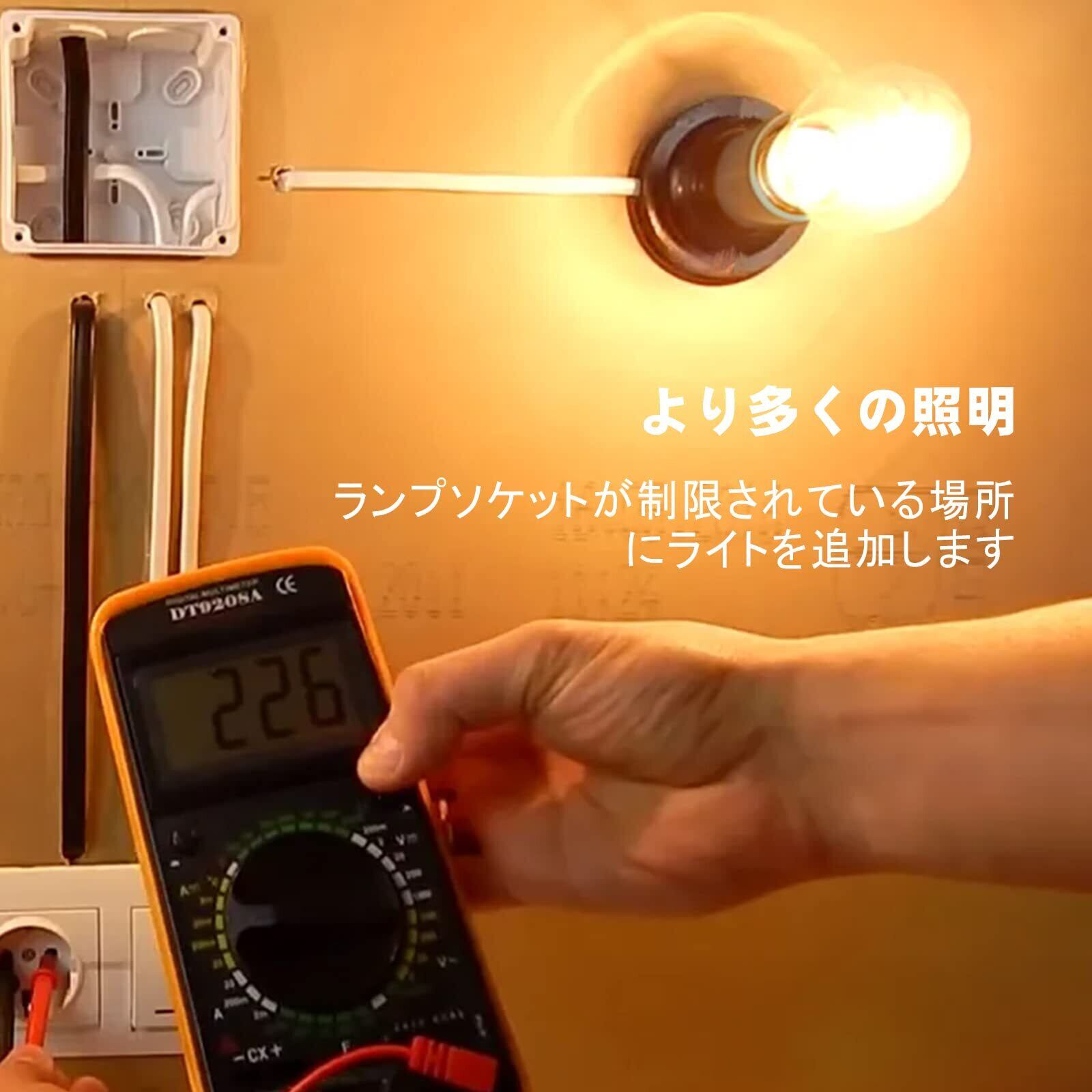 1、コンセントをソケットに変換できます: コンセントにこのアダプターを接続すれば、一般的な白熱電球・LED電球(口金:E26)が点灯できます、100ワット以下の電球用。
