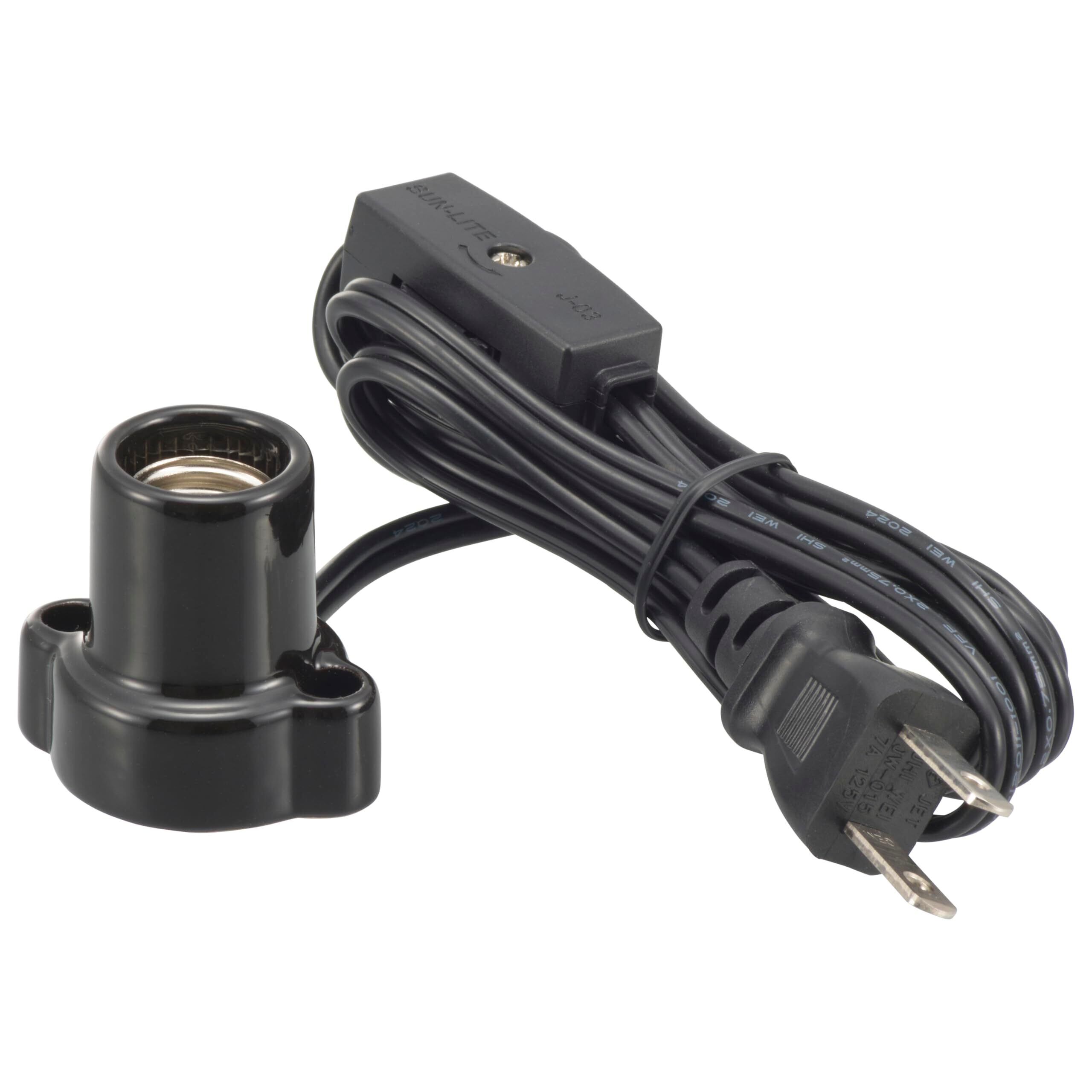 【 特 長 】 ◆熱に強い磁器製です ◆ロータリー式中間スイッチ付き ◆コードが付いて結線加工がいりません ◆1A-250V 口金E17用 ◆100ワットまで ◆コード長さ1.5m ◆本体カラーは黒