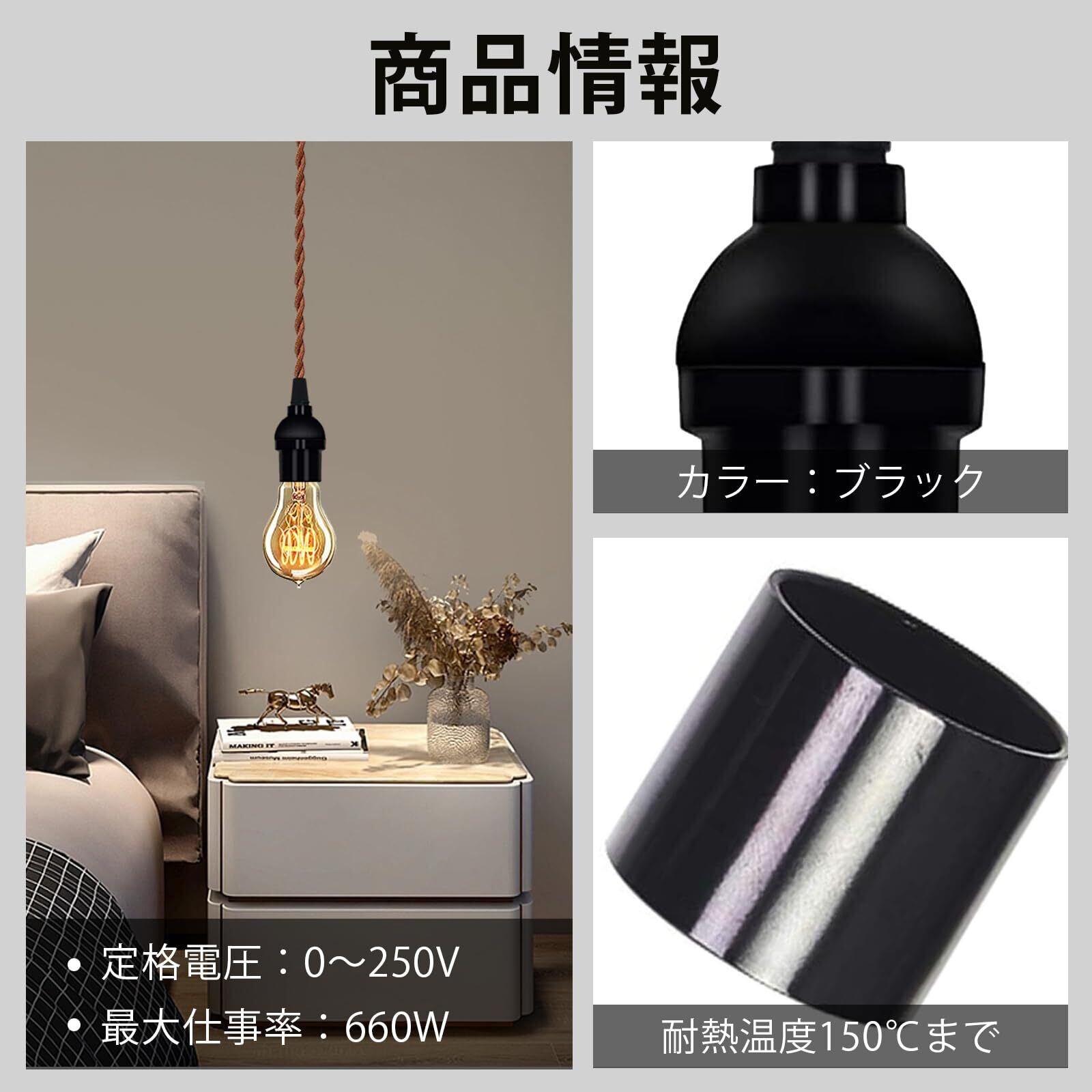 【2025最新】電球ソケットe26 ライトソケット ソケットホルダー ペンダントライト PSE認証済み 照明部品 ソケットアダプター 天井照明用 エジソン電球ソケット ライトホルダー ledベース照明 赤銅 吊り下げライト用 ペンダントライト工事不要 取付簡単 リビング ダイニング 【ブラック 6個セット】