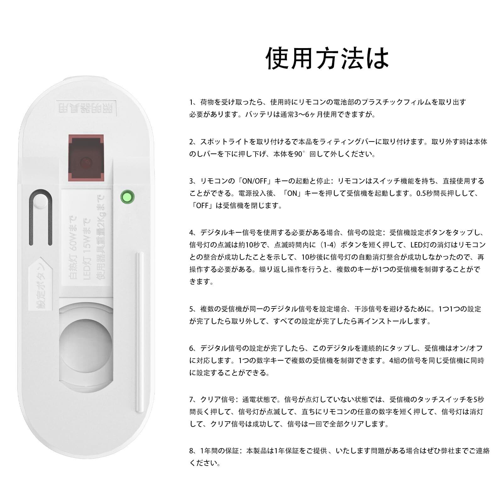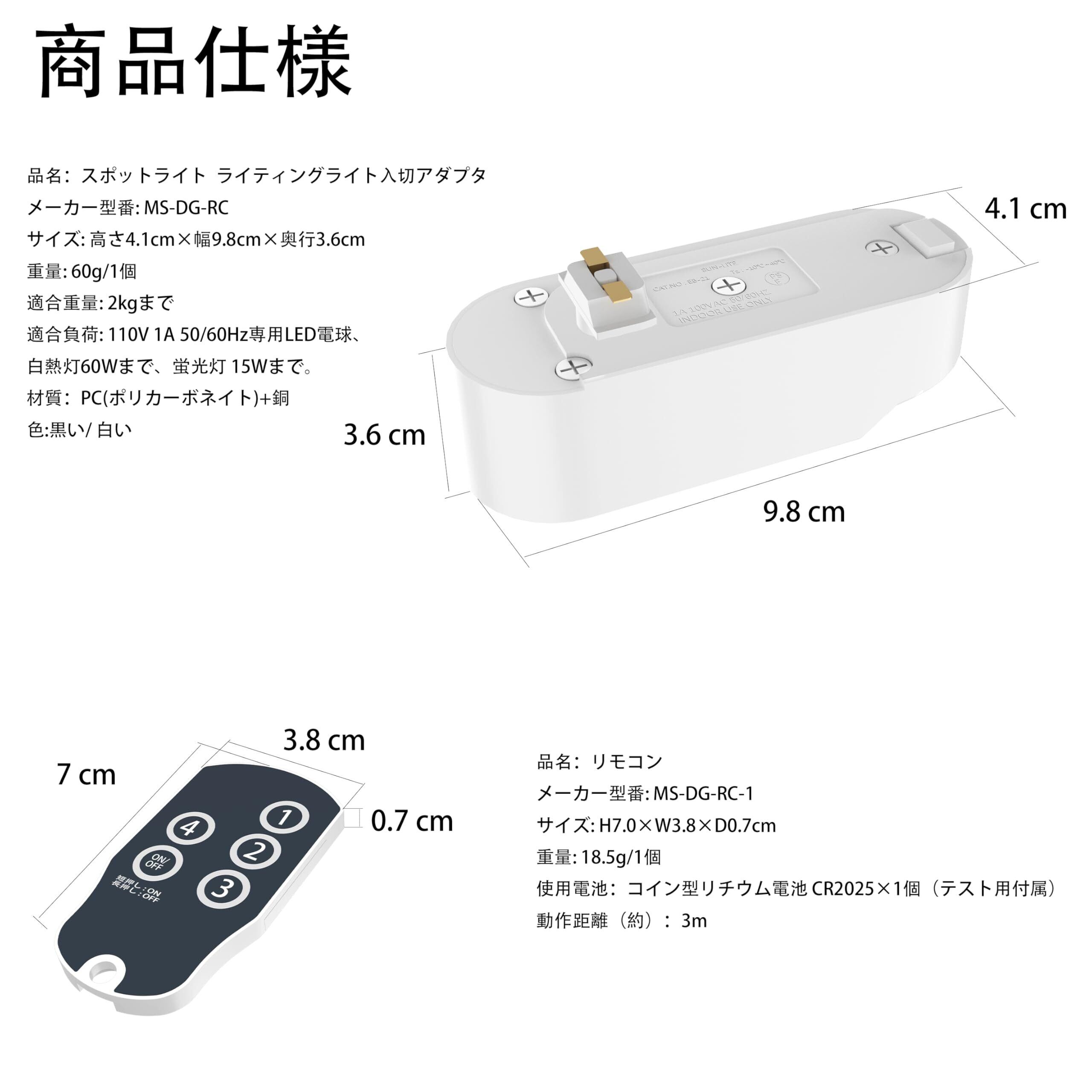 【2025最新】ライティングライト入切アダプタ、スポットライト リモコン 、4種類の信号が送信、白い、2個入り(受信機 2個入り+リモコン 1個入り)