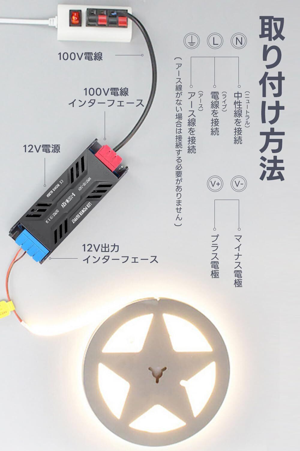 【取付け簡単】簡単な配線で設置が完了し、スイッチング電源にはわかりやすい指示があり、日本語説明書も付属しています 。何か問題があったら、お気軽にSPAHERにお問い合わせください。