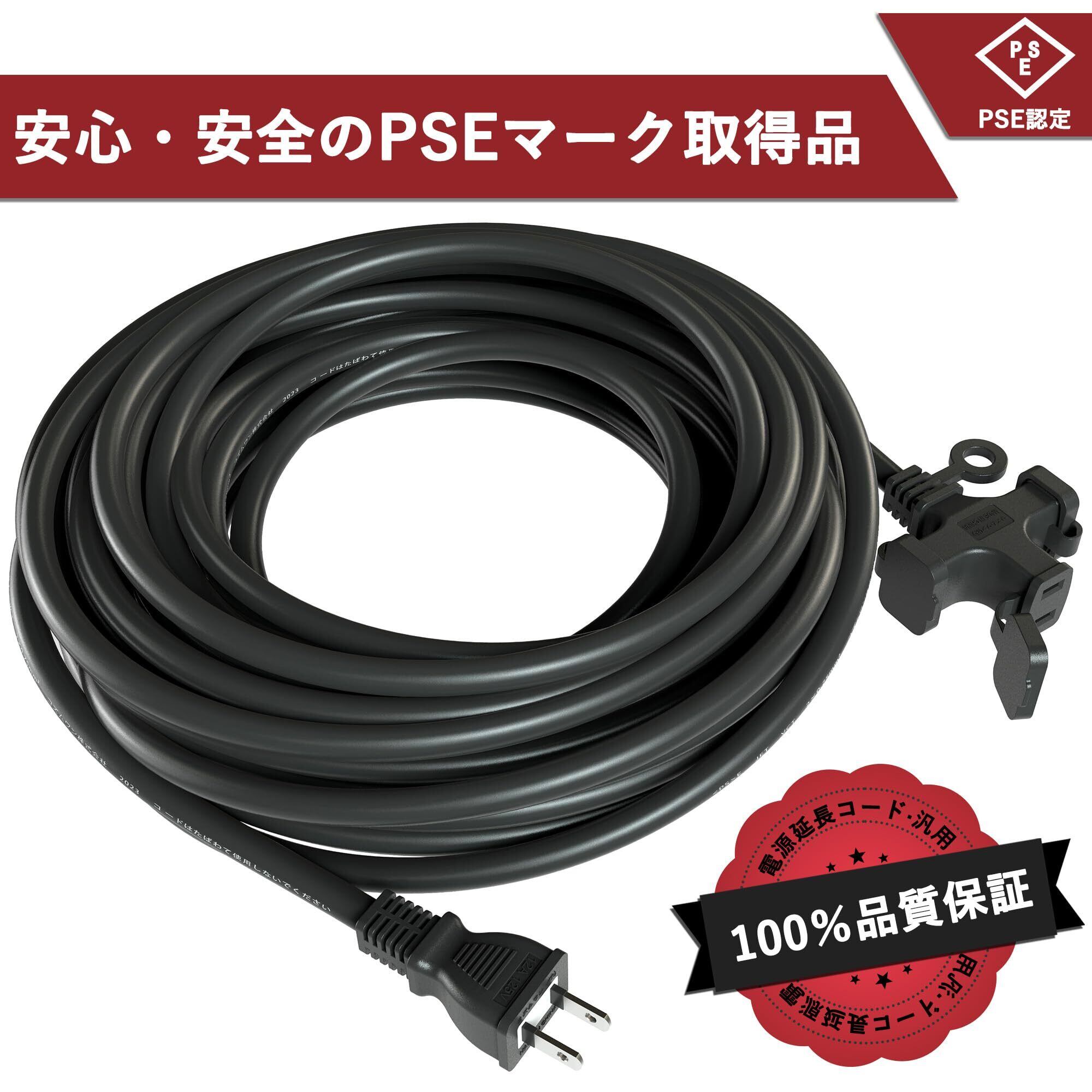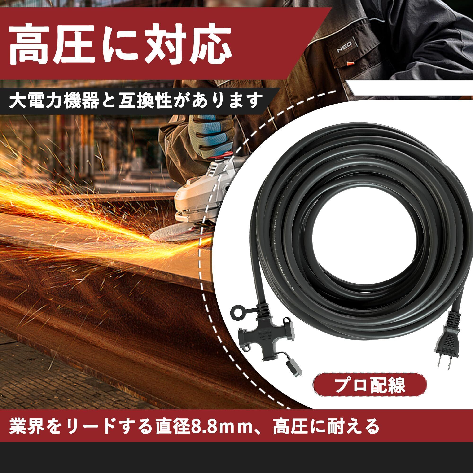 延長コード 作業用 30cm 1m 5m 10m 20m 3分配 3口 ソフトタイプ 電源ケーブル 防塵 屋内屋外作業 園芸機械用 トラッキング火災予防 電工 1200W PSE認証 VCT専用コード キャップ付き 屋内 室外 活用 耐熱耐寒 (ブラック, 20m)