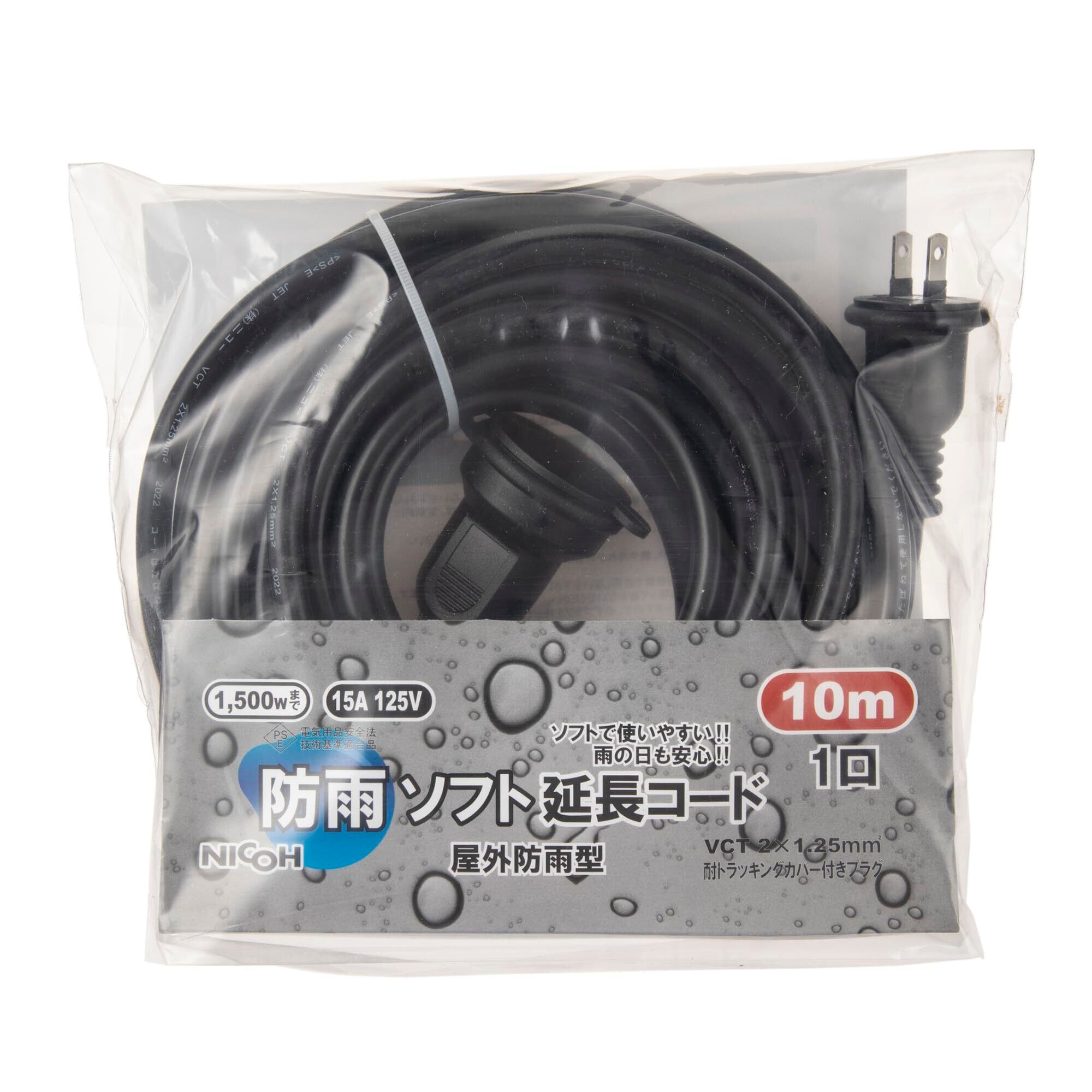 NICOH(ニコー) 防雨 ソフト 延長コード 10m 15A 1500Wまで 耐トラッキングカバー付 屋外用 屋外 防水 防雨コード 延長ケーブル NCT-10WP