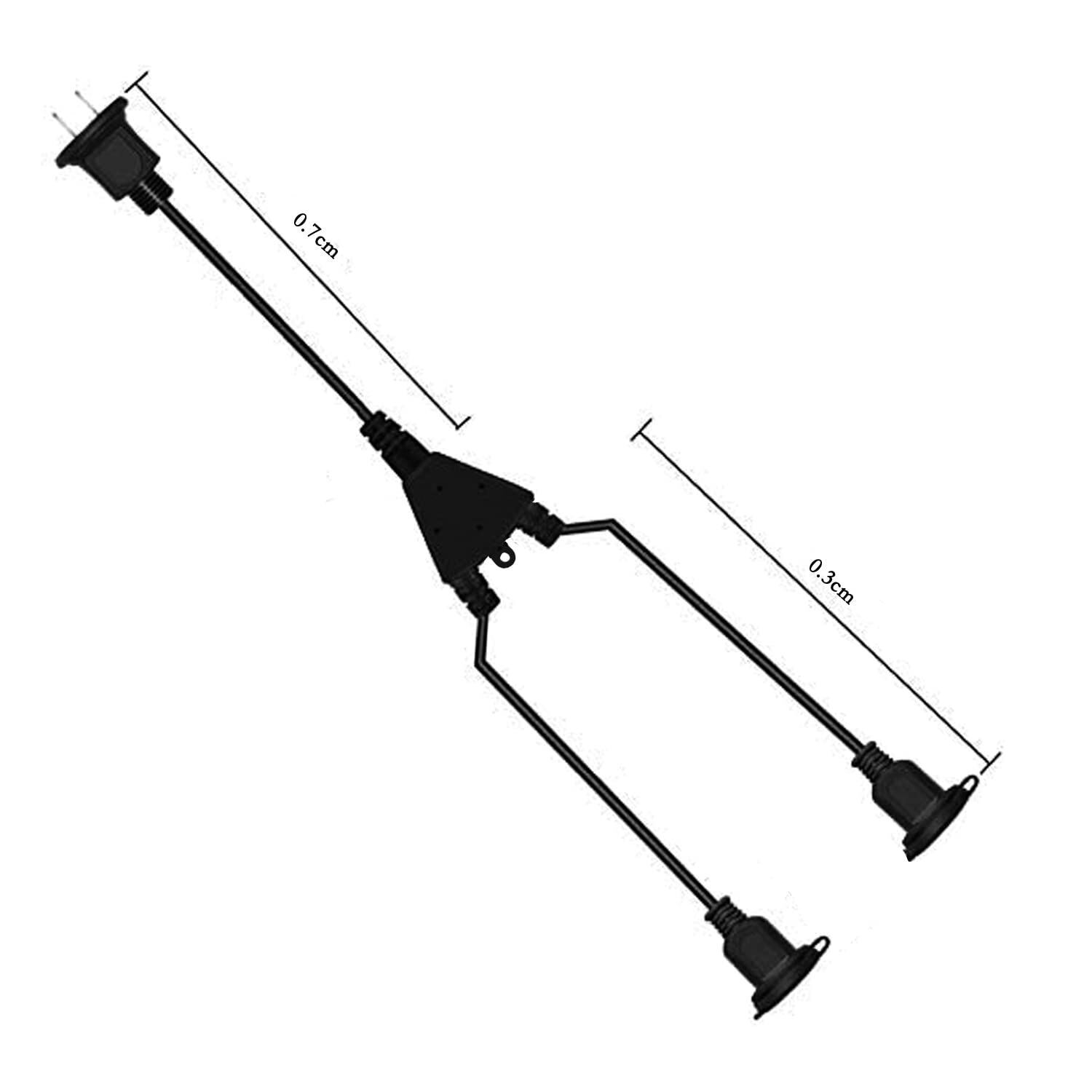 VCTF2*1.25m㎡、15A/125V、合計1000Wまで。コンセント:2分配延長コード。防雨型コネクタ(キャップ付き)。1つの電源コネクタのみを使用する場合は、1500Wに達することができます