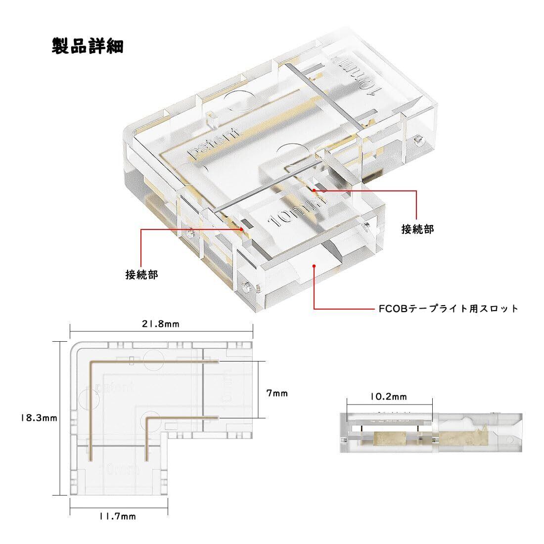 BTF-LIGHTING 2PIN コネクター FCOB COB 10mm幅 LEDコネクターキット 4個 透明なL型コネクター FCOB FOB PWM 単色 +V -V LEDテープライト用の透明なミドルカバーコネクター 半田不要 LEDテープライトに直接接続可能