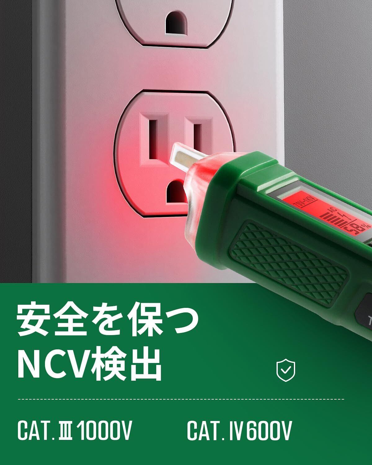 使いやすいデザイン: ポケットに収まるサイズの電圧テスターには便利なペンフックが付属しており、シャツのポケットに入れて簡単に持ち運ぶことができます。さらに、明るい懐中電灯を搭載しており、暗い場所でも回路テストを行うことができます。さらに安全にご利用いただくために、5分間使用しないと自動的にシャットダウンする仕組みになっています