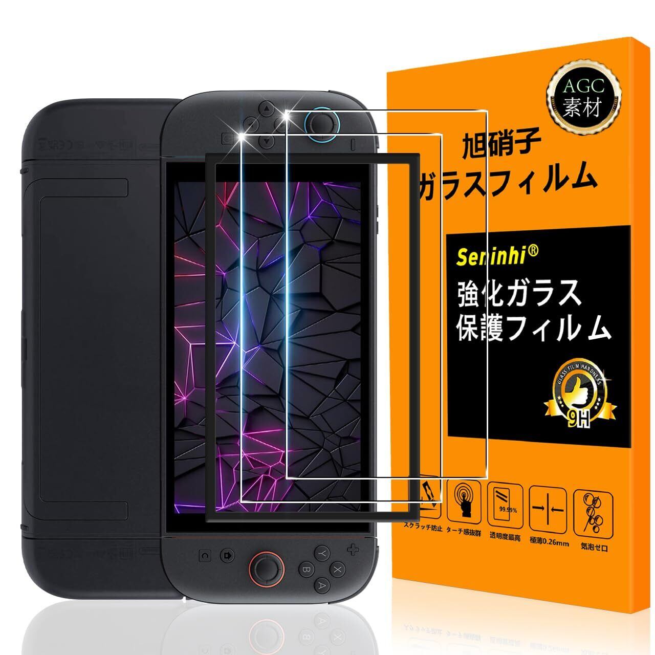 Switch2 ガラスフイルム ガイド枠付き【Seninhi 】【2枚セット 日本旭硝子製-高 品質 】対応 Switch2 フイルム ガイド枠付き 全面保護 強化ガラス 液晶 Switch2 保護フィルム ケース カバー 撥油性 超耐久 高光沢 超薄型 液晶 硬度9H 防指紋 衝撃吸収 高透過率 飛散防止 貼り付け簡単 気泡なし 極薄 SENLX-TMSH2