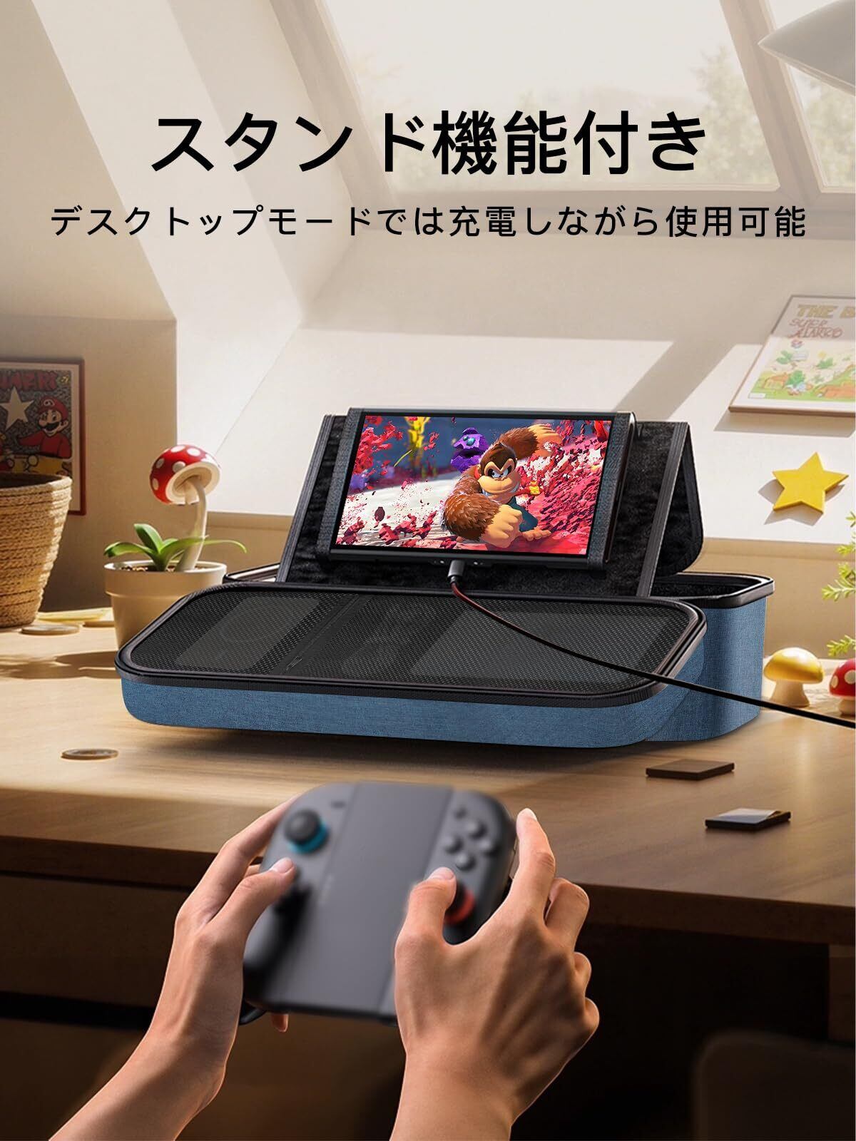 Switch 2 本体と周辺機器をまとめて収納【Switch 2/有機ELモデル対応】switch 2 ケース 大容量 ポーチ スイッチ2 持ち運び便利 スイッチ本体/Joy-Con/電源アダプタ/10枚ゲームカード/ケーブル/イヤホンなど全部収納可能 防水 防塵 防汚 耐衝撃 全面保護 (ブルー)