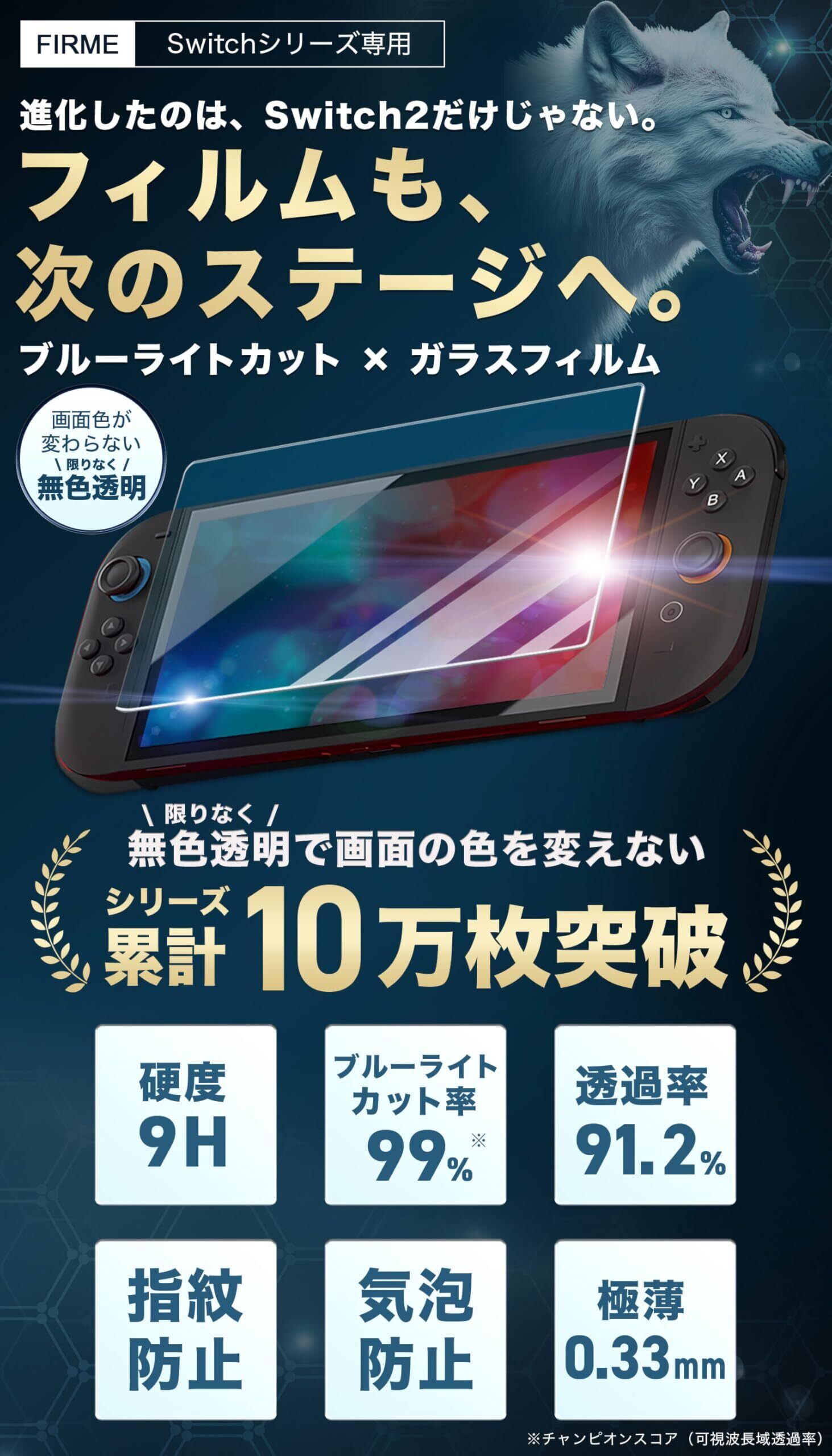【 99%カット 】 switch 2 用 保護フィルム ブルーライトカット スイッチ2 保護フィルム ブルーライト カット 99% +UVカット カバー 画面 保護 目に優しい 高硬度 ガラス 指紋防止 本体 保護 Switch2,ブルーライト