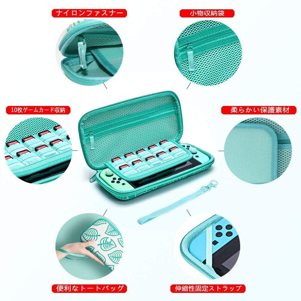 Switch ケース 【N-Switch/Switch 有機ELモテル対応】どうぶつの森 X-Gun ニンテンドースイッチケース かわいい 防塵/防水/耐衝撃/持ち運び便利 外出や旅行用収納バッグ Switch本体/Switch oled本体/ゲームカード10枚/Joy-Con/ケーブル/イヤホンなど小物収納ケース【両面カラーデザイン+4個可愛 スティックカバー付き】