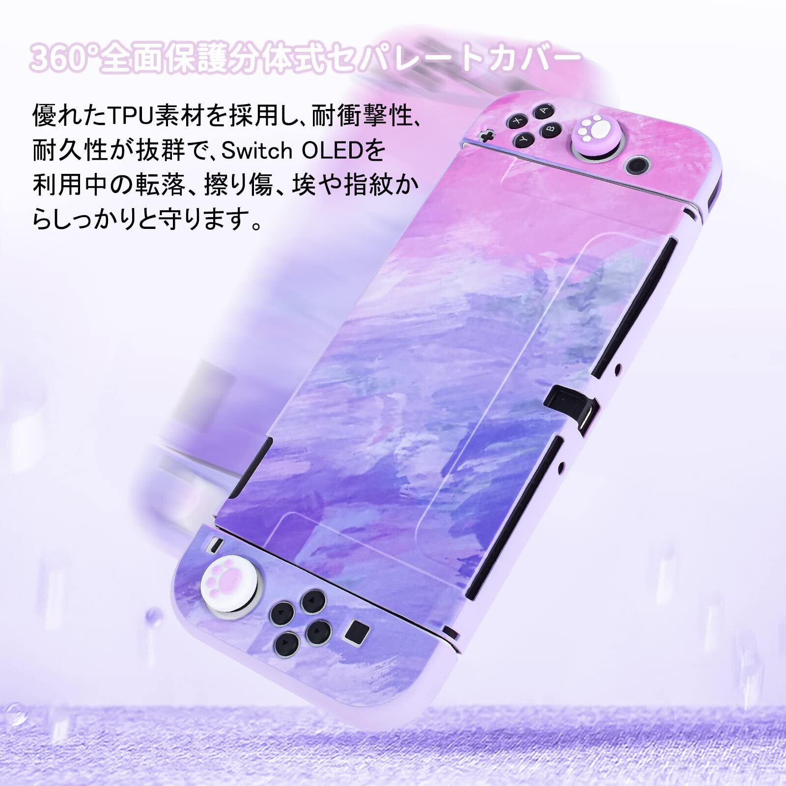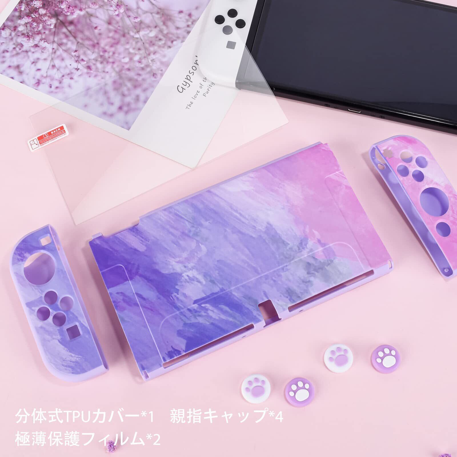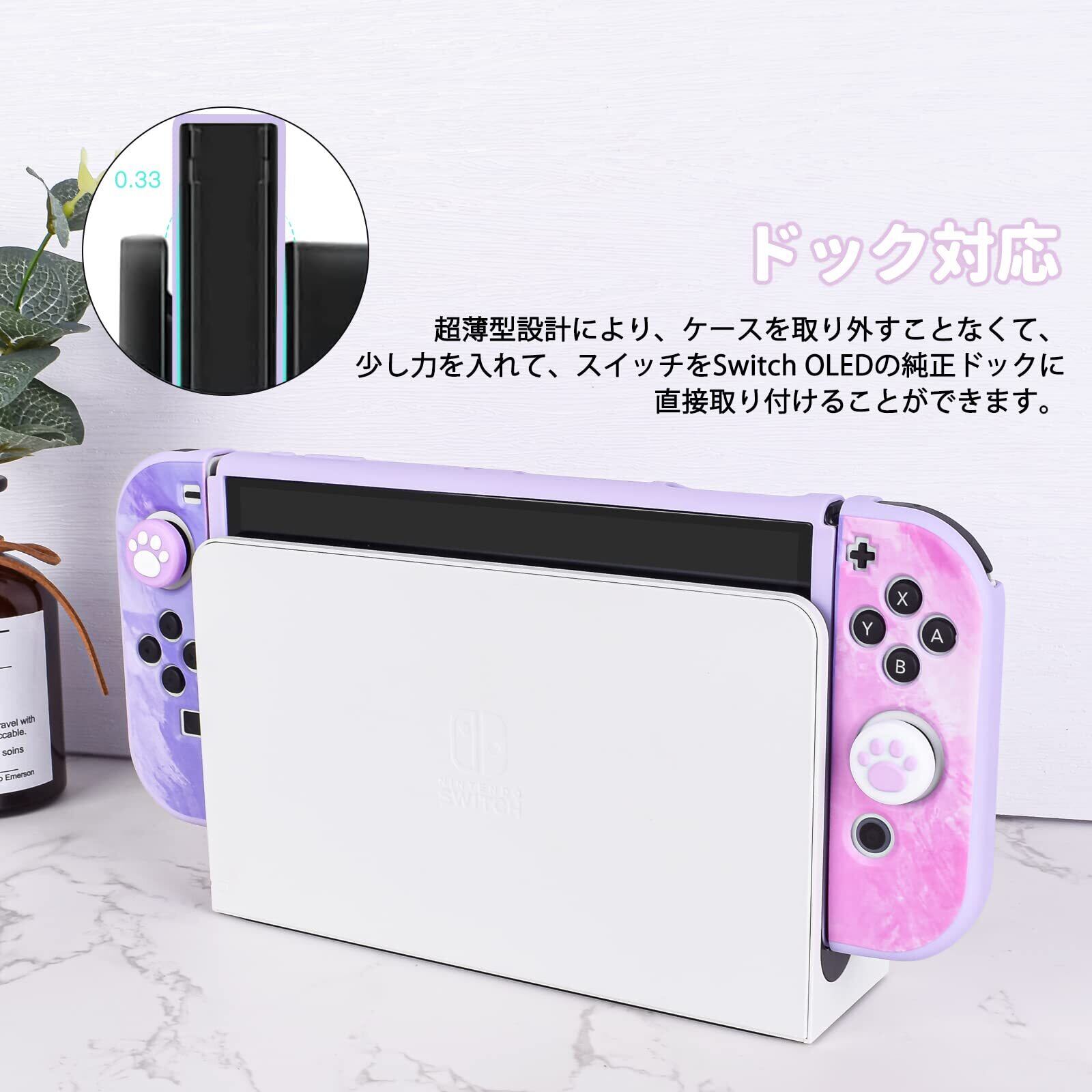 【Switch OLEDに対応】switch OLED のために専門設計された実用TPUカバーです。ミリ単位による精密設計により余計な空間やズレ等はありません。装着後本体と完璧フィットて、ゲームのボタンに邪魔しません。switch OLED各機能が自由に使えます。セット内容:switch OLED保護ケース*1+ガラスフィルム*1+可愛い猫爪親指キャップ*4