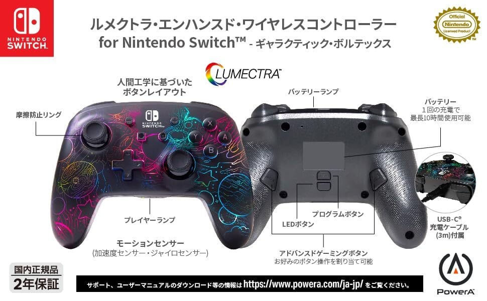 【任天堂公式ライセンス商品】PowerA パワーエー ルメクトラ・エンハンスド・ ワイヤレスコントローラー for Nintendo Switch - ギャラクティック・ボルテックス NSGP0349JP-01