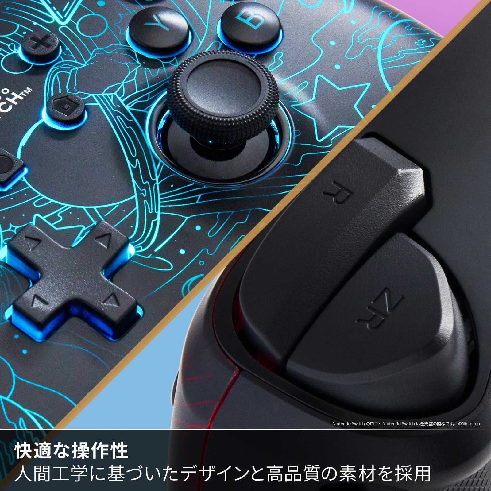 ゴースト RGB LEDライティング機能で、未知なる体験を。カスタマイズ可能な5つのモード設定で、何千通りもの銀河が暗闇から浮かび上がります。ゲームのパフォーマンスを高める豊富な機能が搭載されています。 プレイ中に素早くお好みのボタン操作を割り当てられる2つのアドバンスドゲーミングボタン、直感的なモーションセンサー(加速度センサー/ジャイロセンサー対応)を使った旋回やターンなどの優れた操作性に加えて、人間工学に基づいたデザインにより、長時間にわたるゲームもストレスなく快適に楽しめます。 900mAhの充電式バッテリーは1回の充電で最長10時間*のゲームプレイが可能。USB-C充電ケーブル(3m)付属。国内正規品2年付きで、安心してプレイを楽しめます。任天堂ライセンス商品です。 © 2024 ACCO Brands. PowerA およびPowerA ロゴはACCO Brandsの登録またはです。 Nintendo Switchのロゴ・Nintendo Switchは任天堂のです。 © Nintendo Bluetooth® ワードマークおよびロゴは登録であり、Bluetooth SIG, Inc. が所有権を有します。 ACCO Brandsは使用許諾の下でこれらのマークおよびロゴを使用しています。 その他のおよび登録は、それぞれの所有者のおよび登録です。 USB-C®は、USB Implementers Forumの登録です。