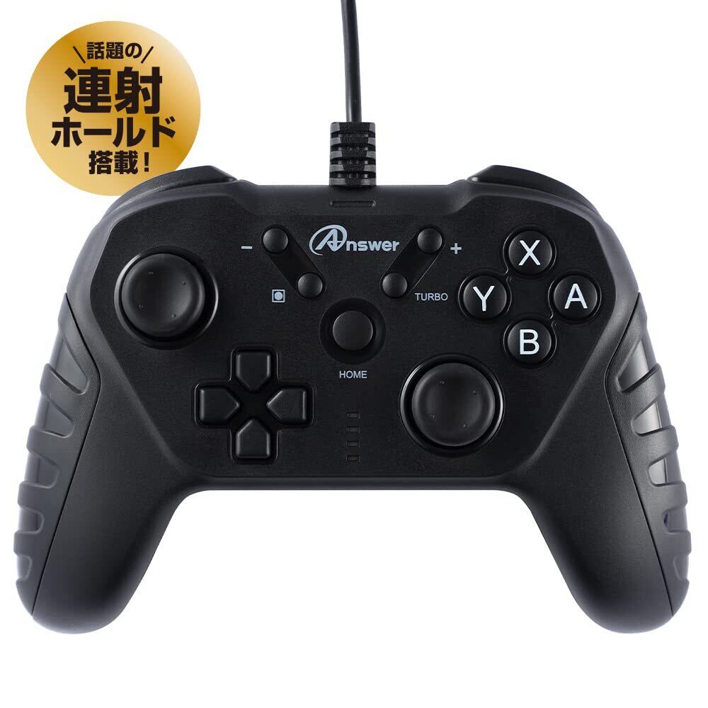 アンサー Switch2/Switch/PC用 USBコントローラ ベーシカル (シンフォニーブラック)【高感度スティック/ジャイロ・加速度センサー/連射・連射ホールド/一括解除機能】