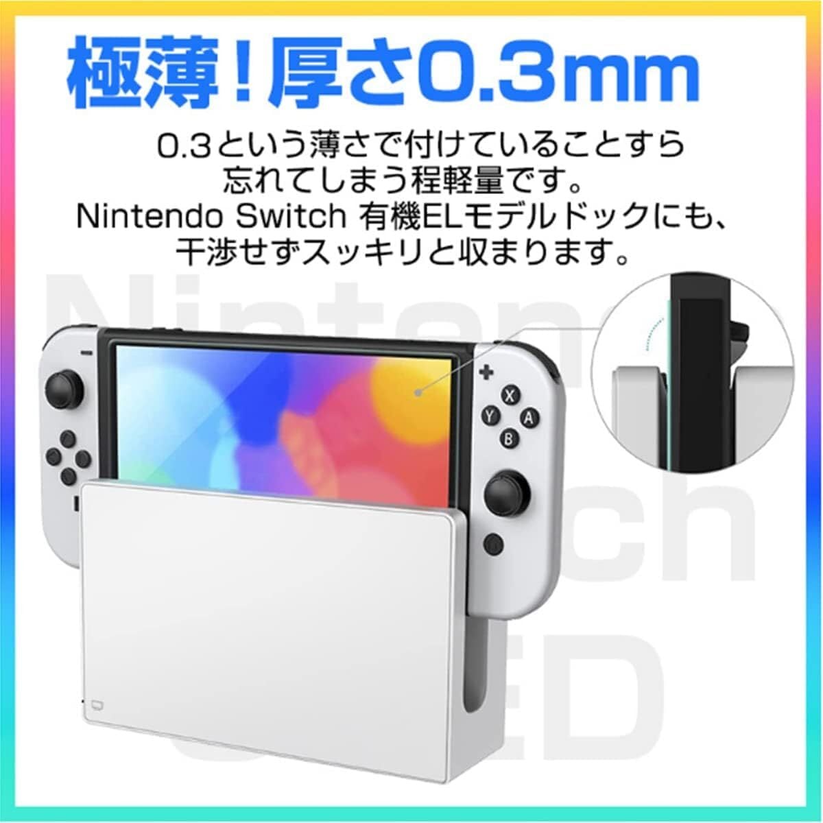 Switch 有機ELモデル用 ガラスフィルム 強化 ガラス 保護 フィルム ブルーライトカット 目の疲れ軽減 日本旭硝子素材 高透過率 強靭9H 撥水撥油 指紋・飛散防止 気泡ゼロ 貼り付け簡単 親指グリップキャップ*2個付き(2枚入り)