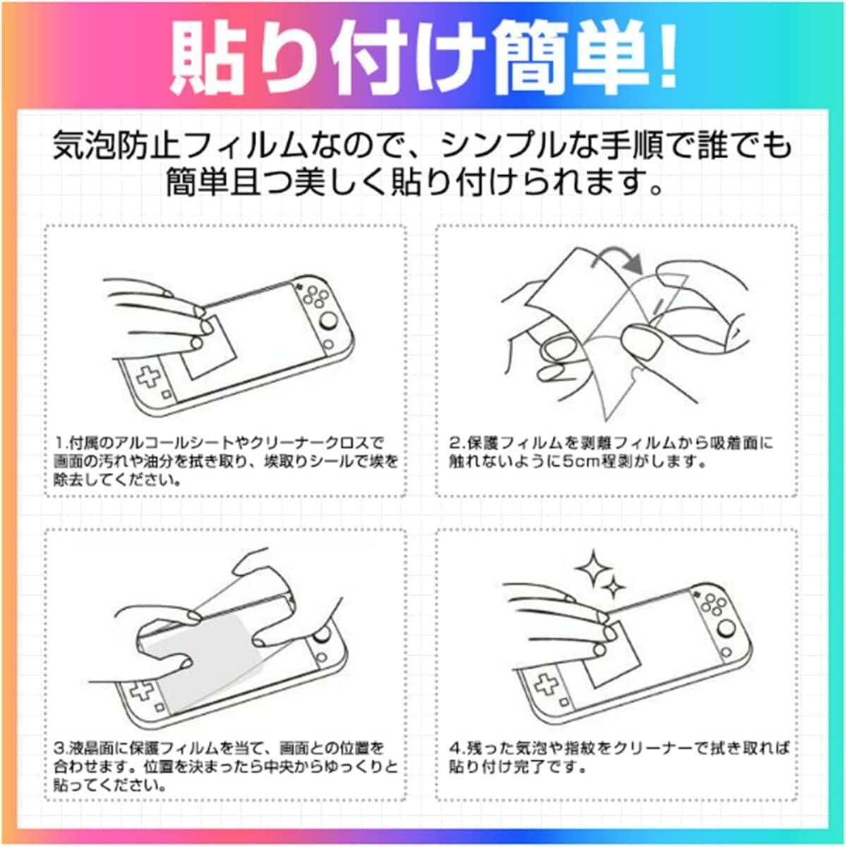【誰でも簡単貼り付け】位置合わせ・貼り付けがしやすいように工夫しております。お客様が失敗を心配せずに貼り付けられます。Switch有機ELモデル用保護フィルム貼付け位置を正確に確定できたら、指で真ん中から端に向かって軽く押すだけで、気泡もなく綺麗に仕上げることができます。他社の製品では、貼り付けた後に縁のところが常に気泡残り、除去もできず、外見やタッチ感度などに大きな影響がされます。
