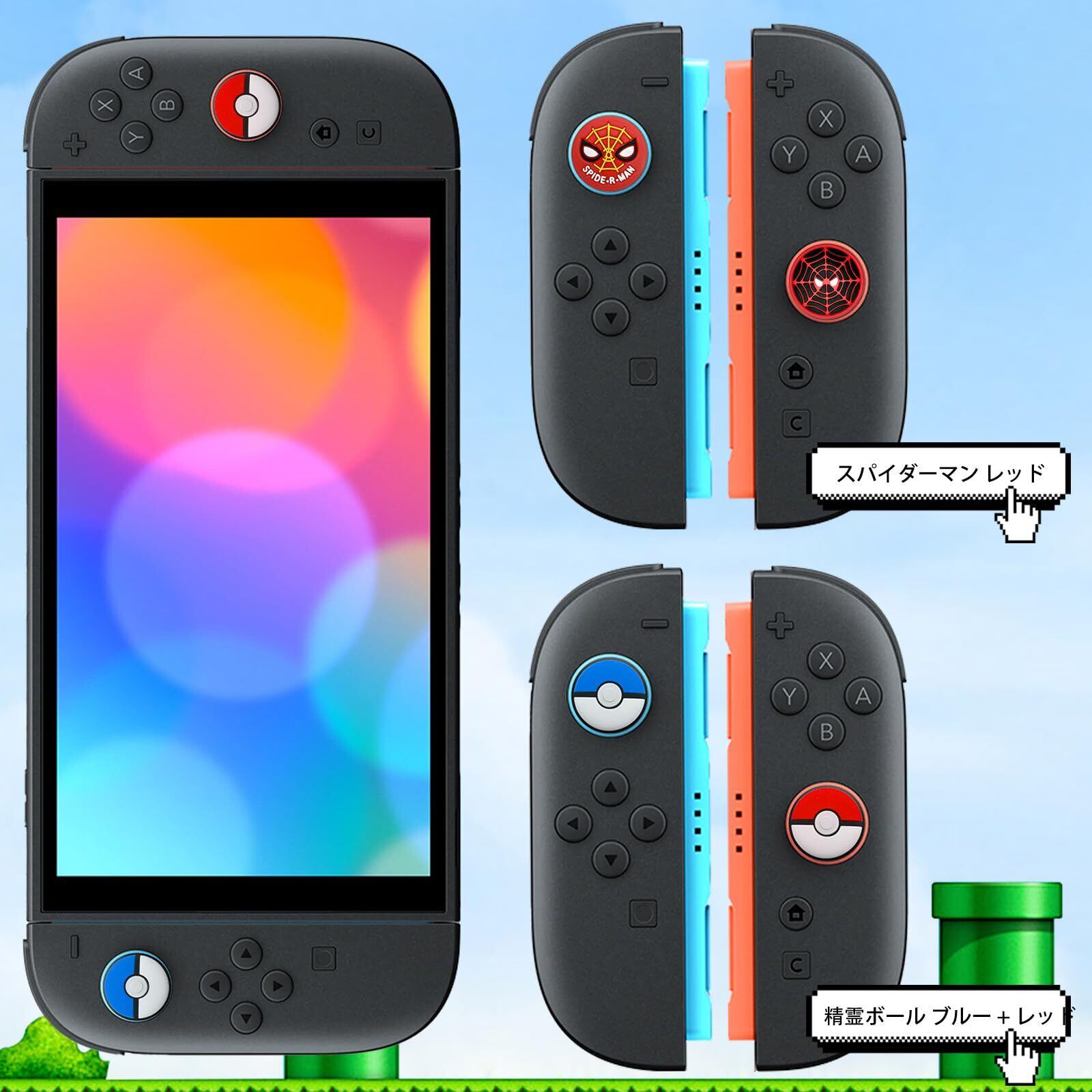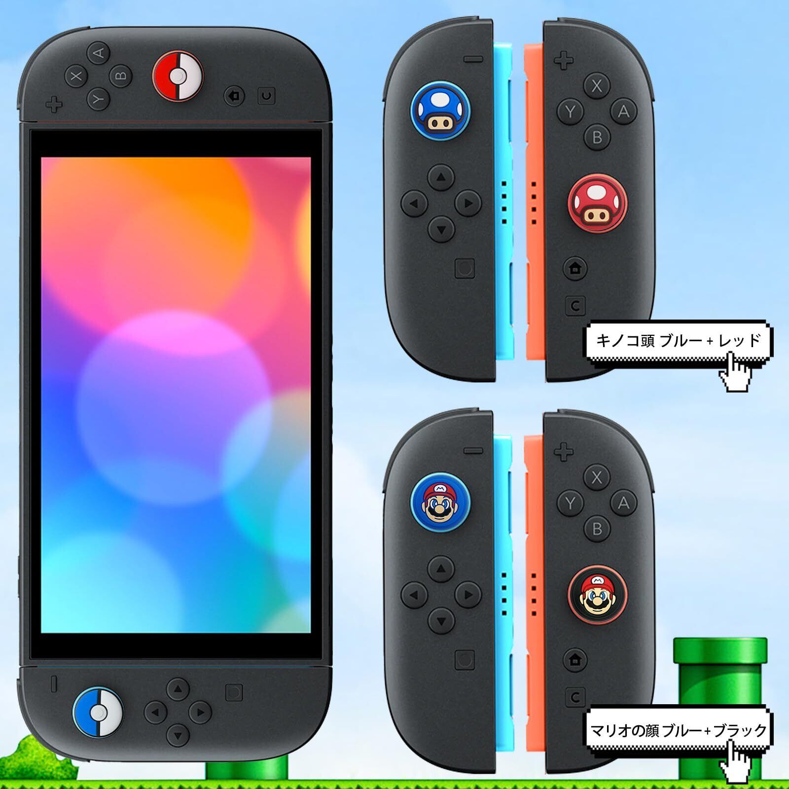 【4個セット】For Switch 2/Switch 2 Pro スティックカバー Mocasa アナログスティックカバー スイッチ ジョイコン 保護カバー ボタンカバー 耐衝撃 滑り止め 可愛い おしゃれ 修理 交換 純正(精霊ボール ブルー + レッド)