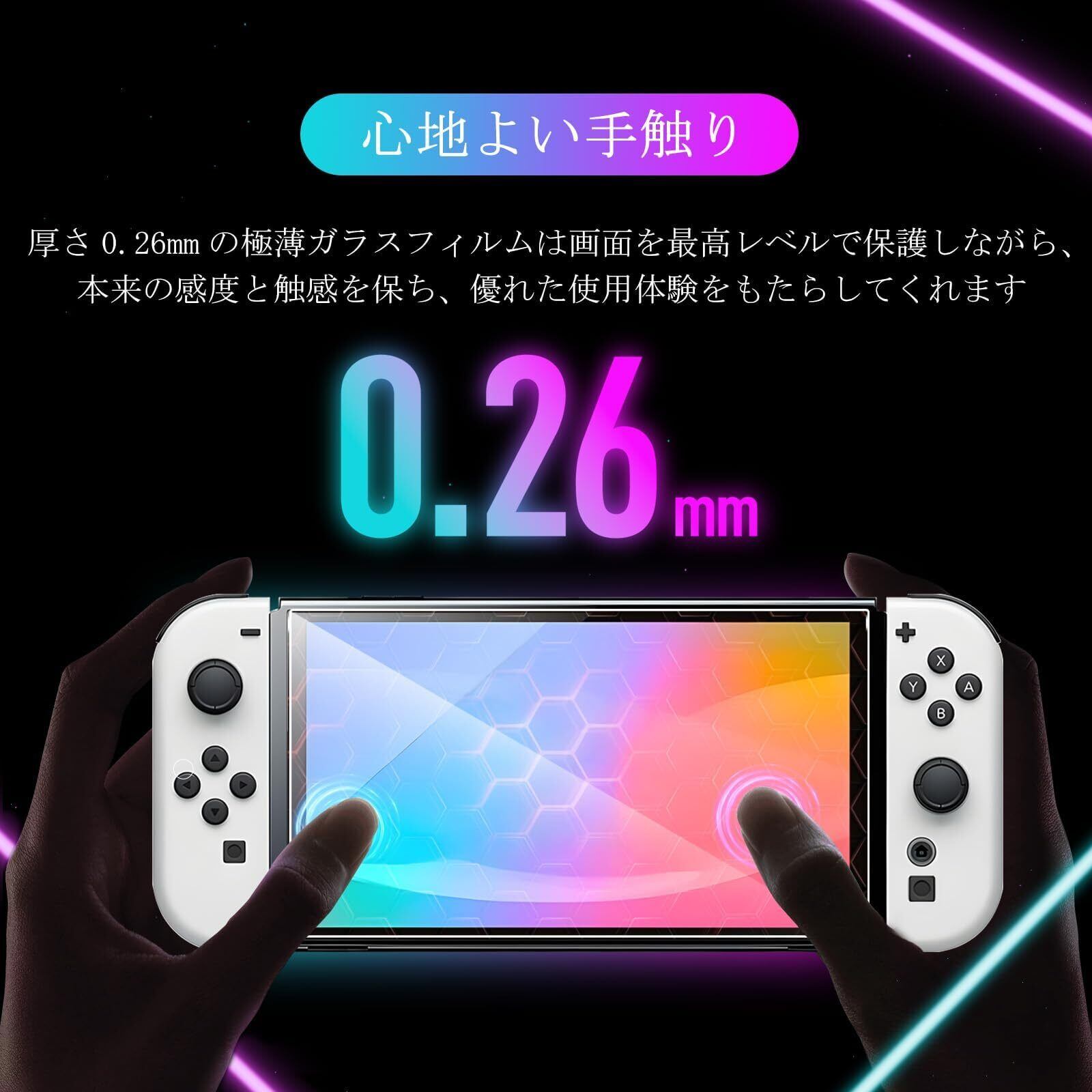 【極薄・超クリア・感度が高い】スイッチ 2 専用保護フィルムは、通常の液晶保護フィルムよりも高級なガラスを採用して作られており、高精細で透明な保護フィルムが最高な解像度があることを確保し、透明度も高くて99%に達し、高透明度で高精細な見る体験を現実しました。そして厚さが0.26mmの極薄強化ガラススクリーンプロテクターは最高レベルで画面保護を実施しながら、本来の感度と触感を保持して、優れた使用体験をもたらします。