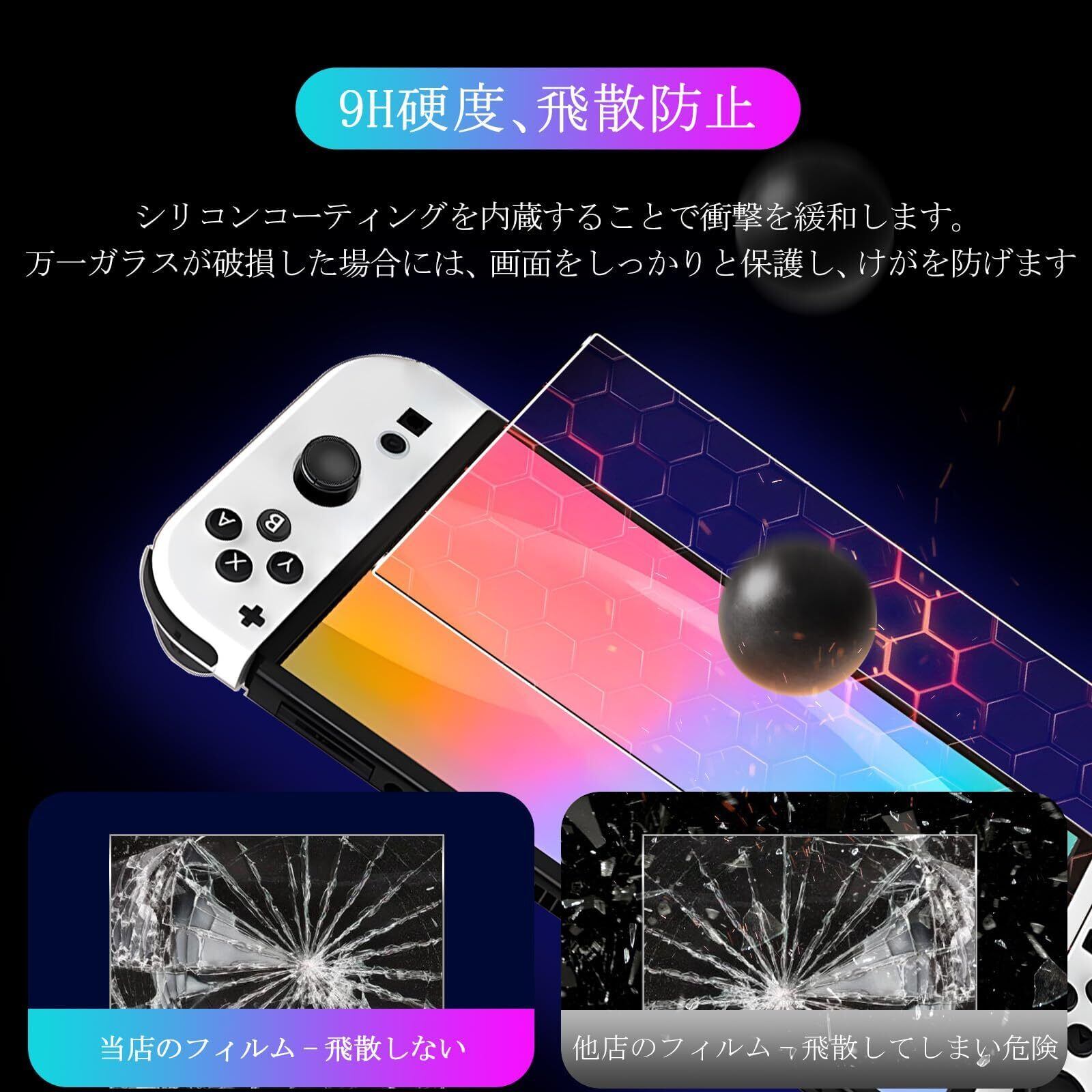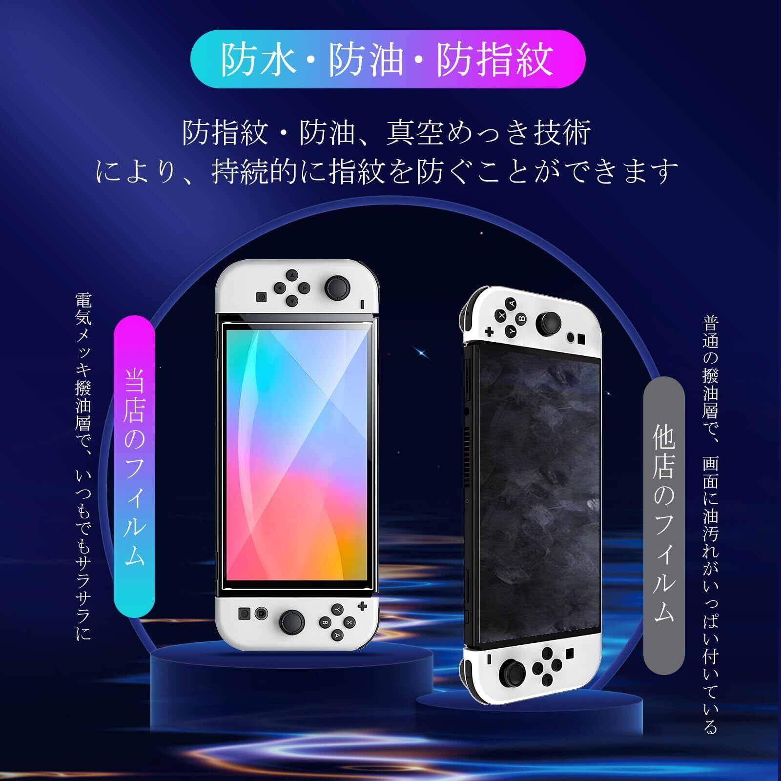 【簡単に貼り付け】Switch2 ガラスフィルムをLCD画面に置くだけで、簡単に自然に吸着して貼り付けることができ、表面にドット技術スタイルの極めて小さな穴を使って、空気漏れの問題を大幅に改善し、気泡の発生を避けます。誰でも簡単、綺麗に貼り付けます。【指紋防止、撥水、油防止】保護フィルムは真空電気メッキプロセスを使って、AF分子防油層を備えて、非常に滑らか、耐水性も高くて、耐油性にも優れます。油や指紋が付着しにくいので、汚れがあれば、サッと拭くだけできれいになります。指触りもスッキリ、画面操作もストレスなくて、とても快適に使いいただけます。一気に液晶画面の油、ホコリ、指紋の付着、キズ、磨耗などの悩みを解決しました。