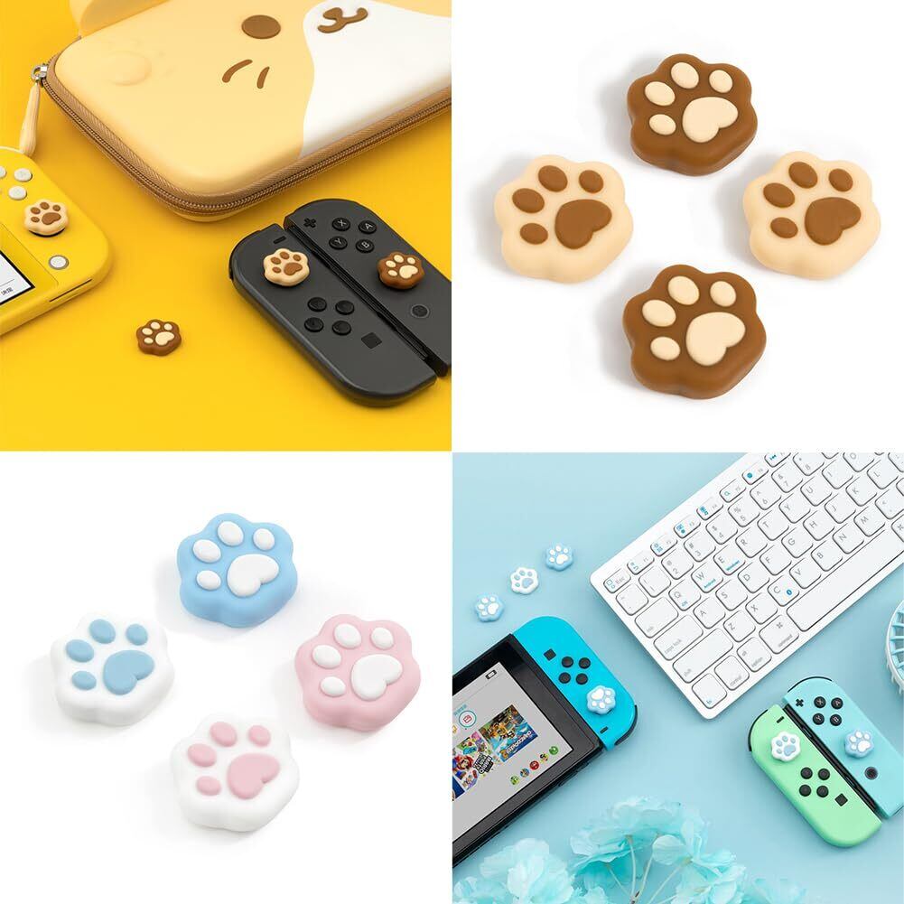 Switch スティックカバー ボタンカバー 16個セット 滑り止め保護カバー ロッカーキャップ 猫手 肉球 猫の爪 Joy-Con ジョイスティックカバー 取り付け簡単