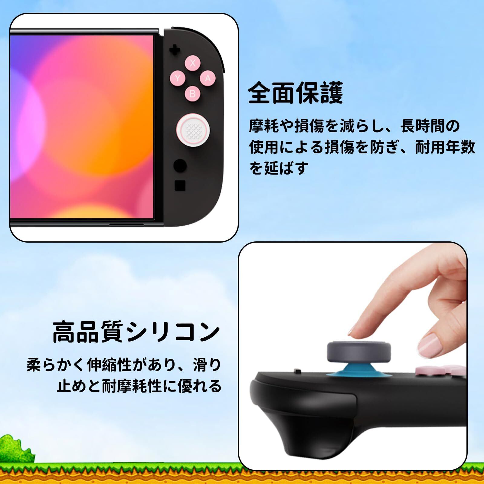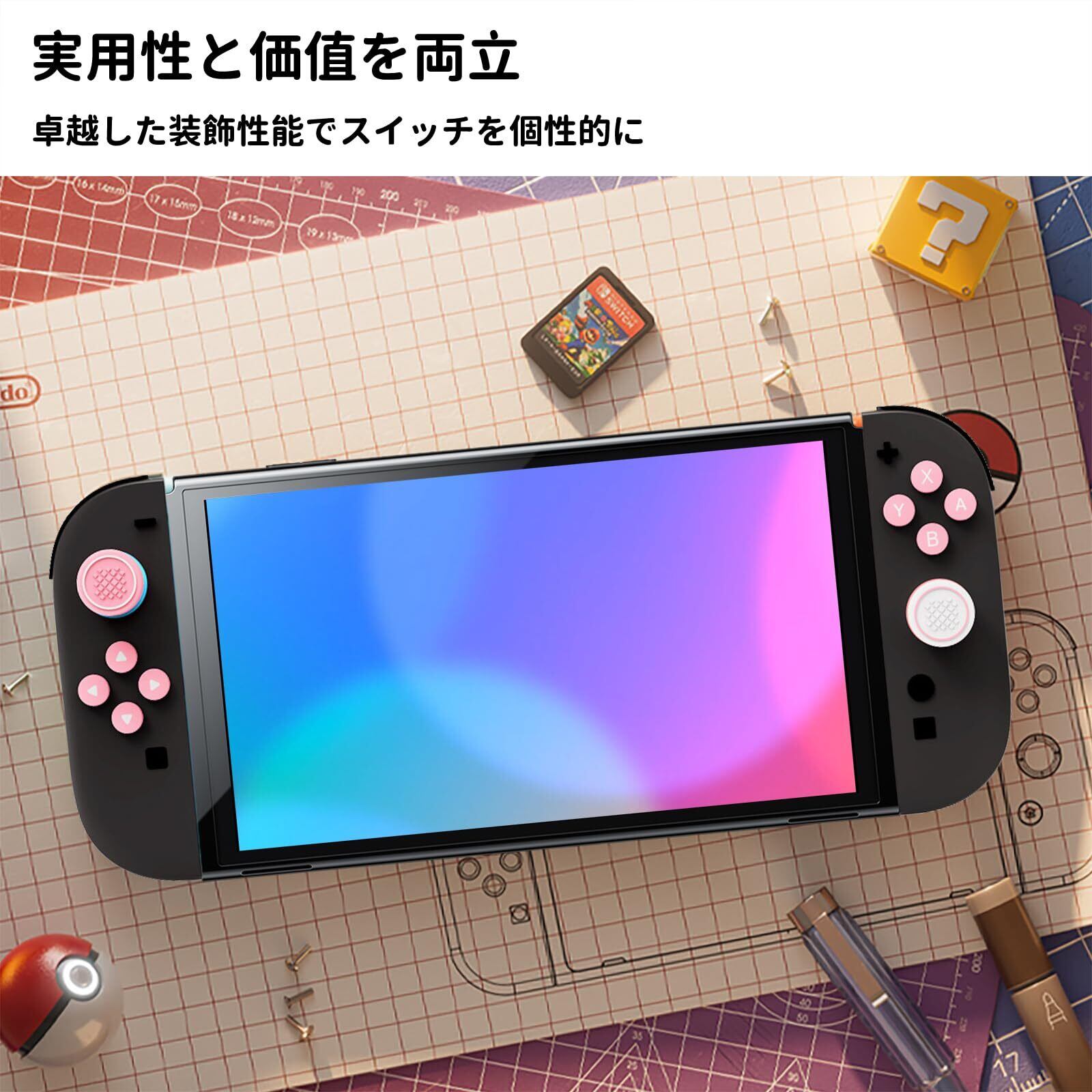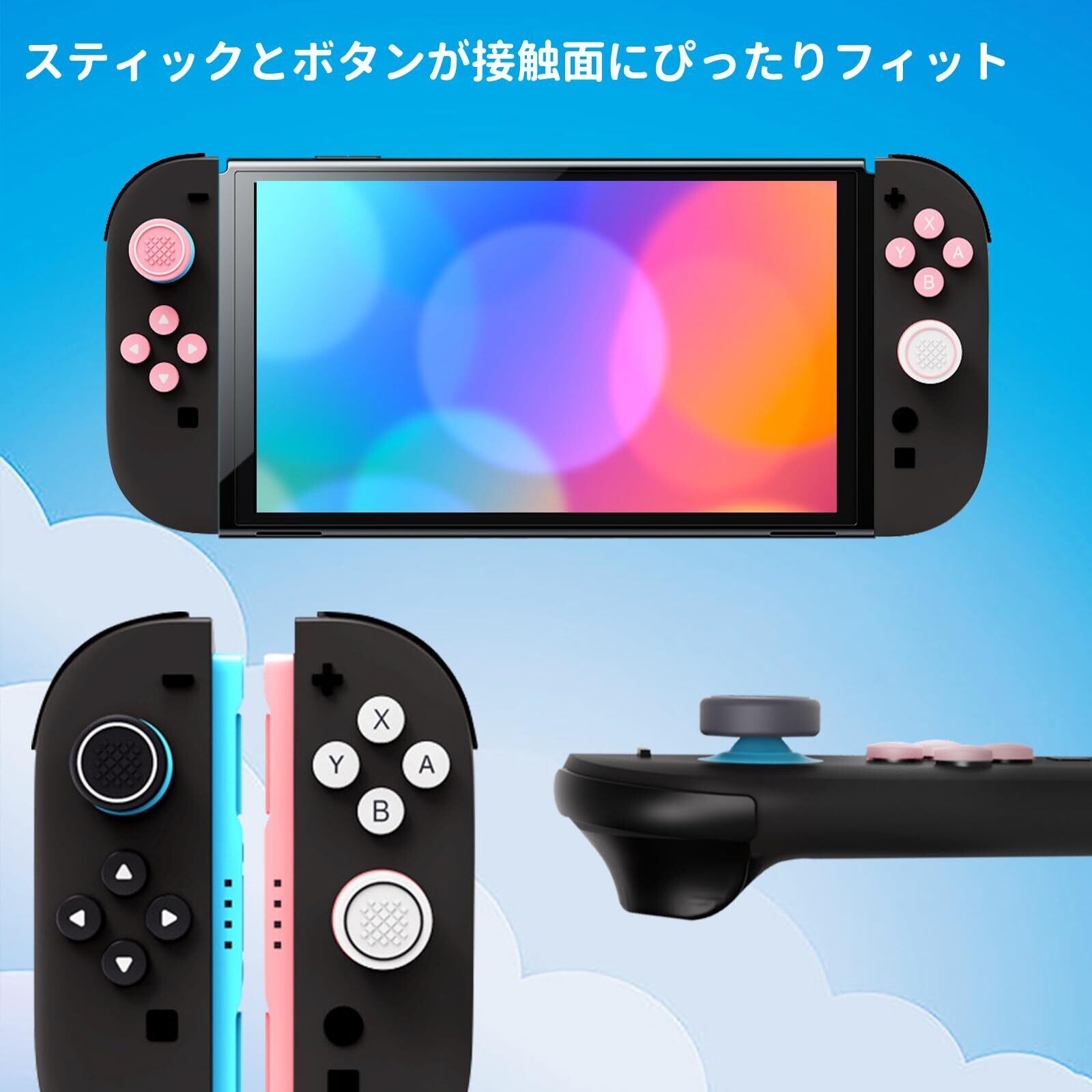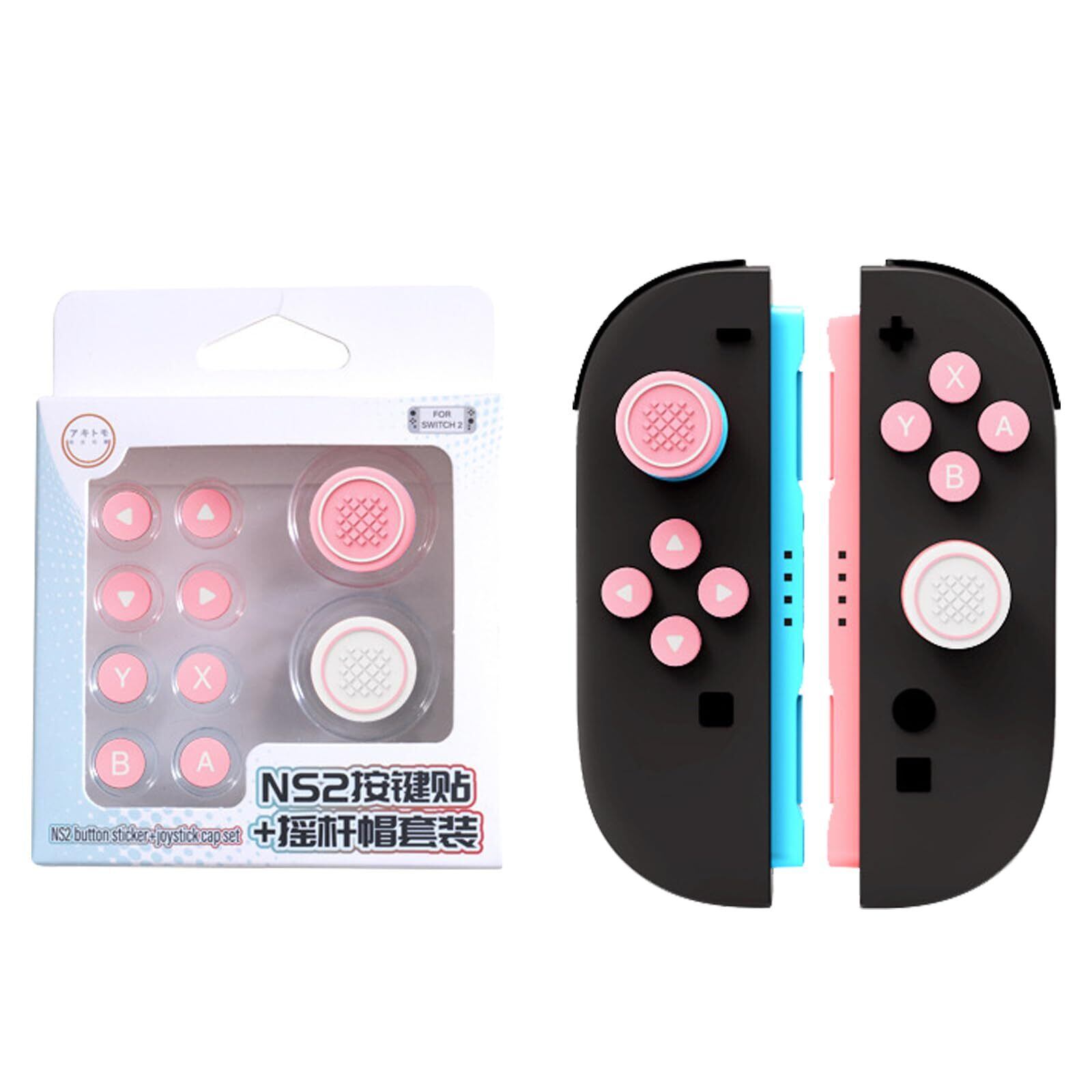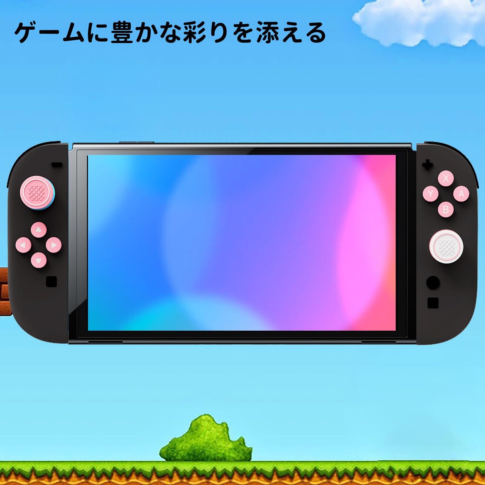For switch 2 スティックカバー+ボタンカバー スティックキャップ やサムグリップセット ジョイコン カバー キーボタンキャップ Switch 2 用 キーボタンキャップ、ボタン保護カバー 全面保護 シリコン素材 防塵 取り付け簡単 ピンク