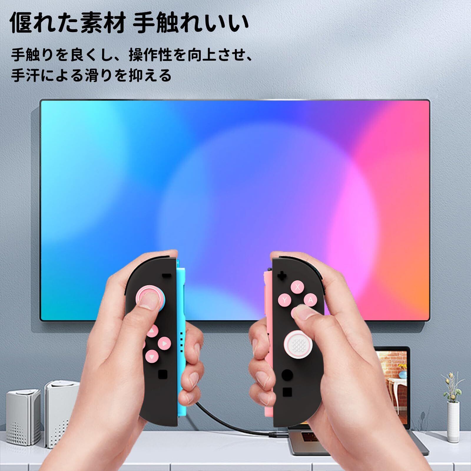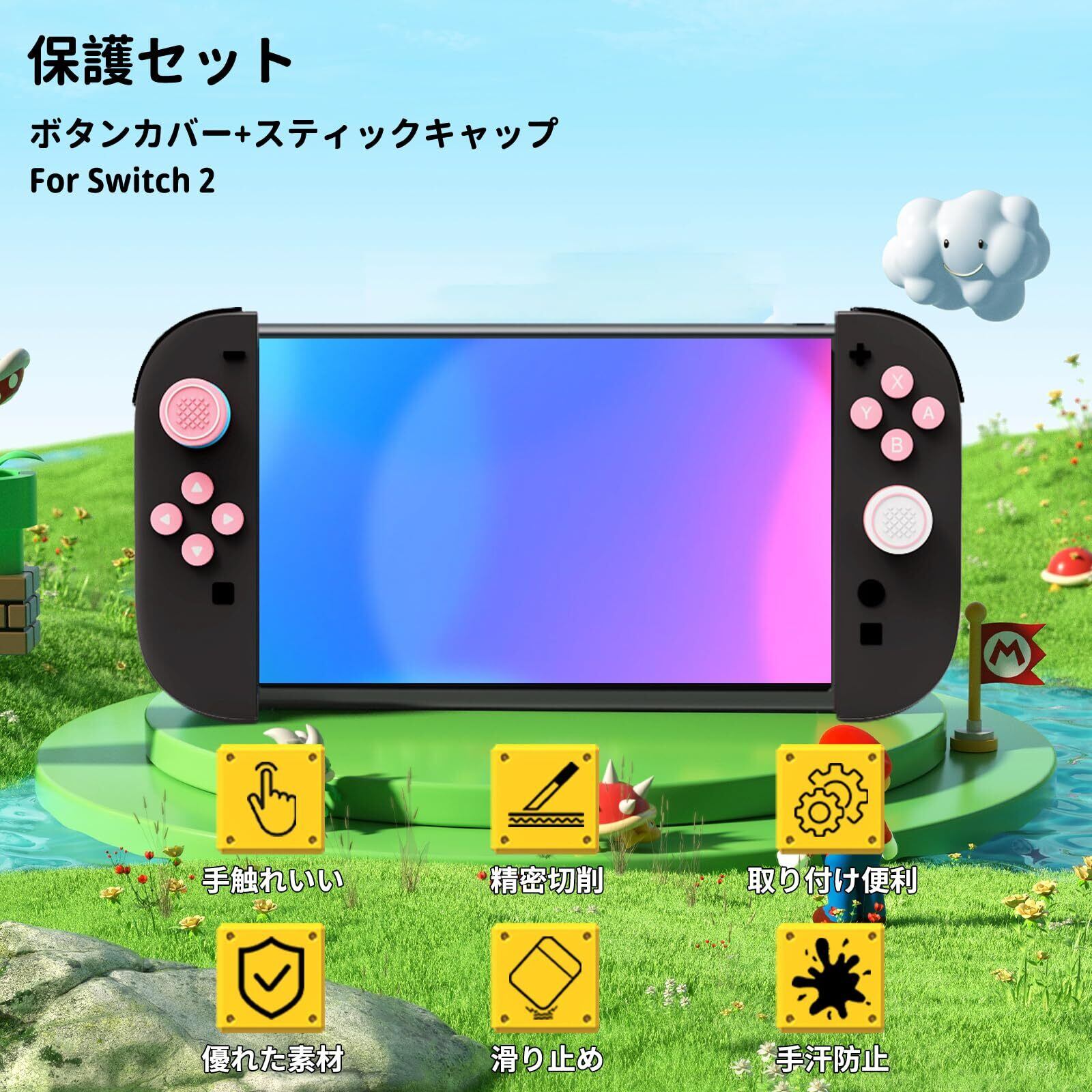 【特価セール】For switch 2 スティックカバー+ボタンカバー スティックキャップ やサムグリップセット ジョイコン カバー キーボタンキャップ Switch 2 用 キーボタンキャップ、ボタン保護カバー 全面保護 シリコン素材 防塵 取り付け簡単 ピンク