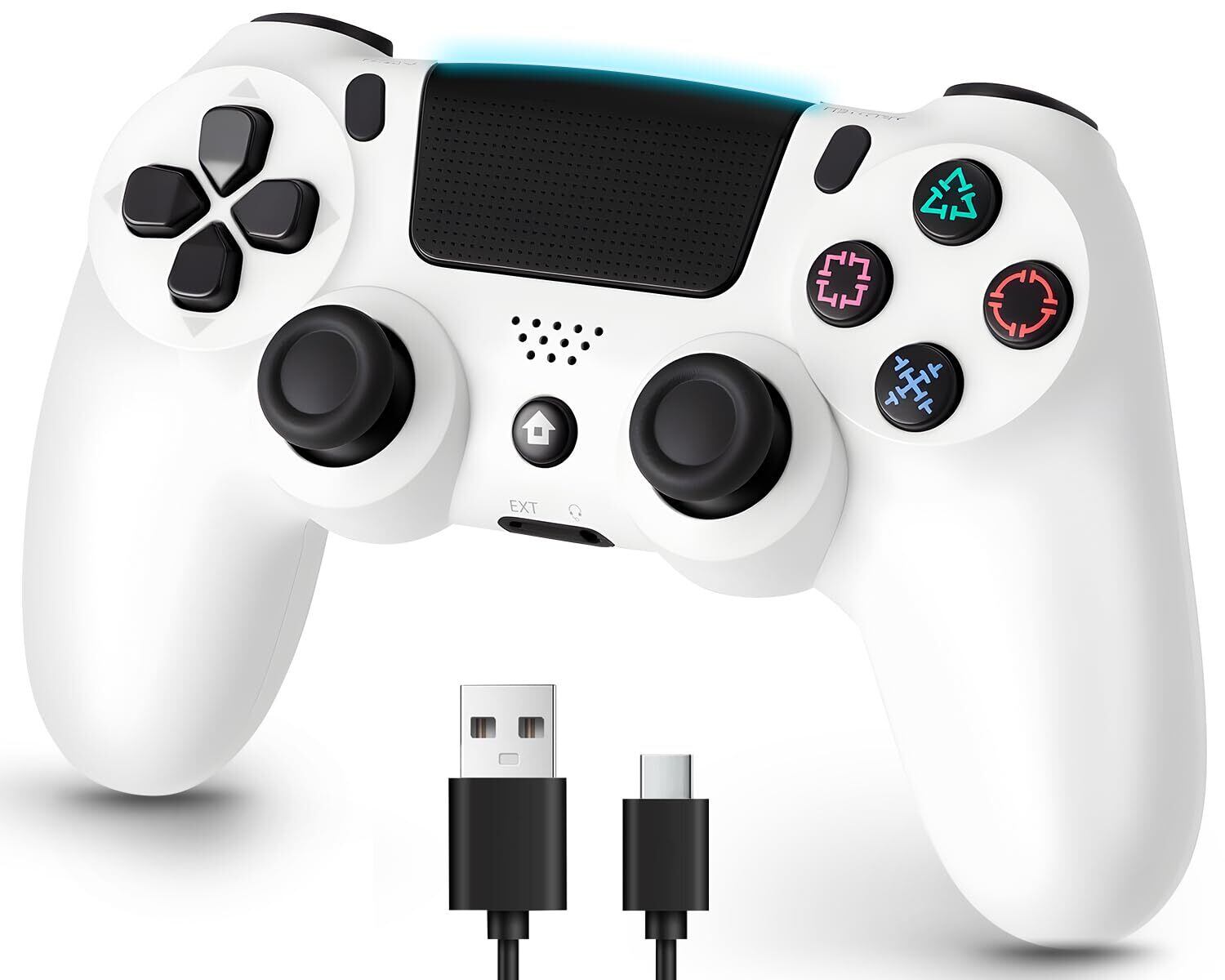 ps4コントローラー【2025年革新版・アップデート】ps4 コントローラ- pc Turbo連射機能 6軸ジャイロセンサー 二重振動 高精密ボタン Bluetoooth5.4 無線/有線安定接続 1000mAh 急速充電 16時間連続使用 人体工学設計 持ちやすい タッチパッド イヤホンジャック付き ワイヤレスコントローラー P3/P4/P4 Pro/Slim/PC対応 日本語説明書 正規品 WHITE