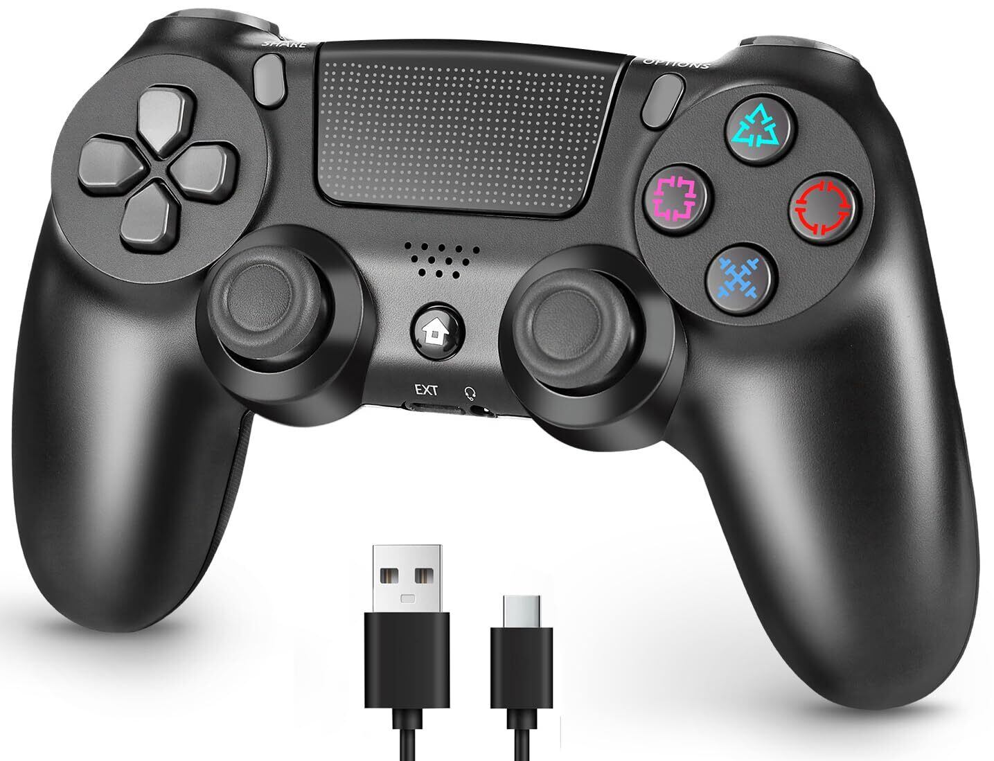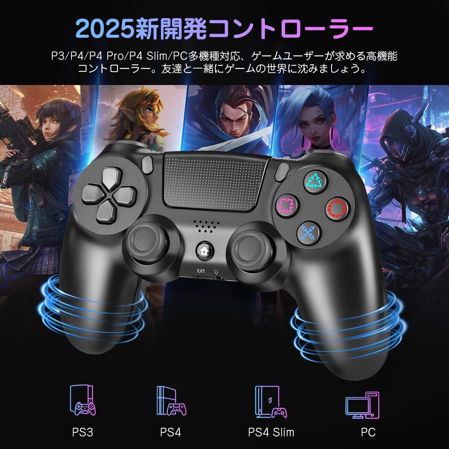 ps4コントローラー【2025年革新版・アップデート】ps4 コントローラ- pc Turbo連射機能 6軸ジャイロセンサー 二重振動 高精密ボタン Bluetoooth5.4 無線/有線安定接続 1000mAh 急速充電 16時間連続使用 人体工学設計 持ちやすい タッチパッド イヤホンジャック付き ワイヤレスコントローラー P3/P4/P4 Pro/Slim/PC対応 日本語説明書 正規品 BLACK