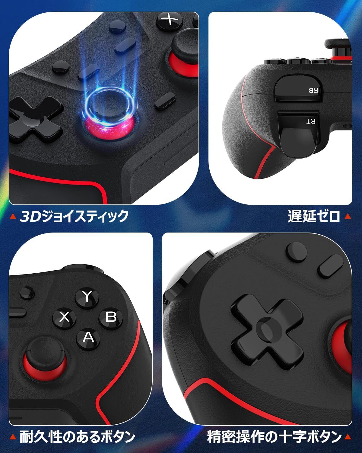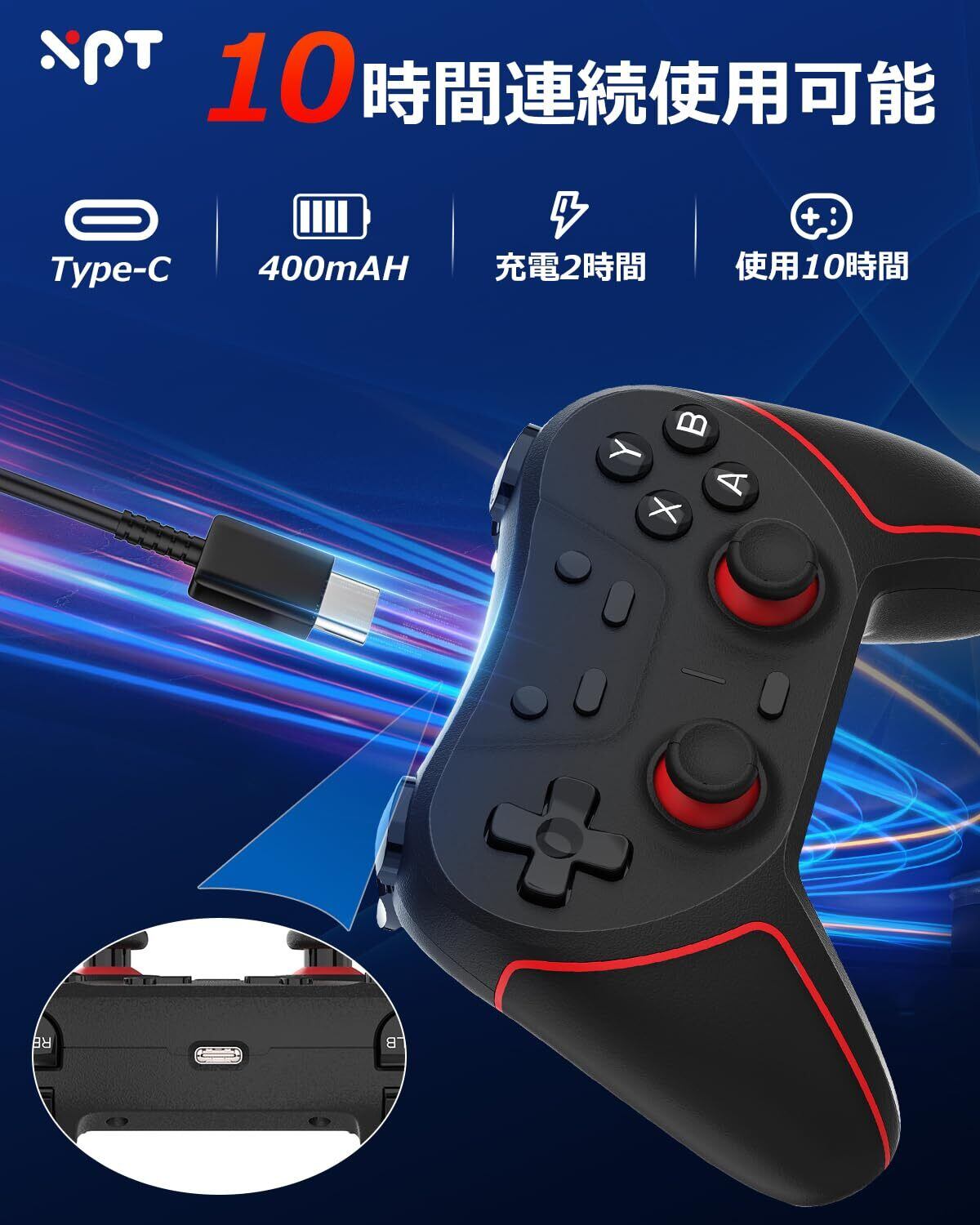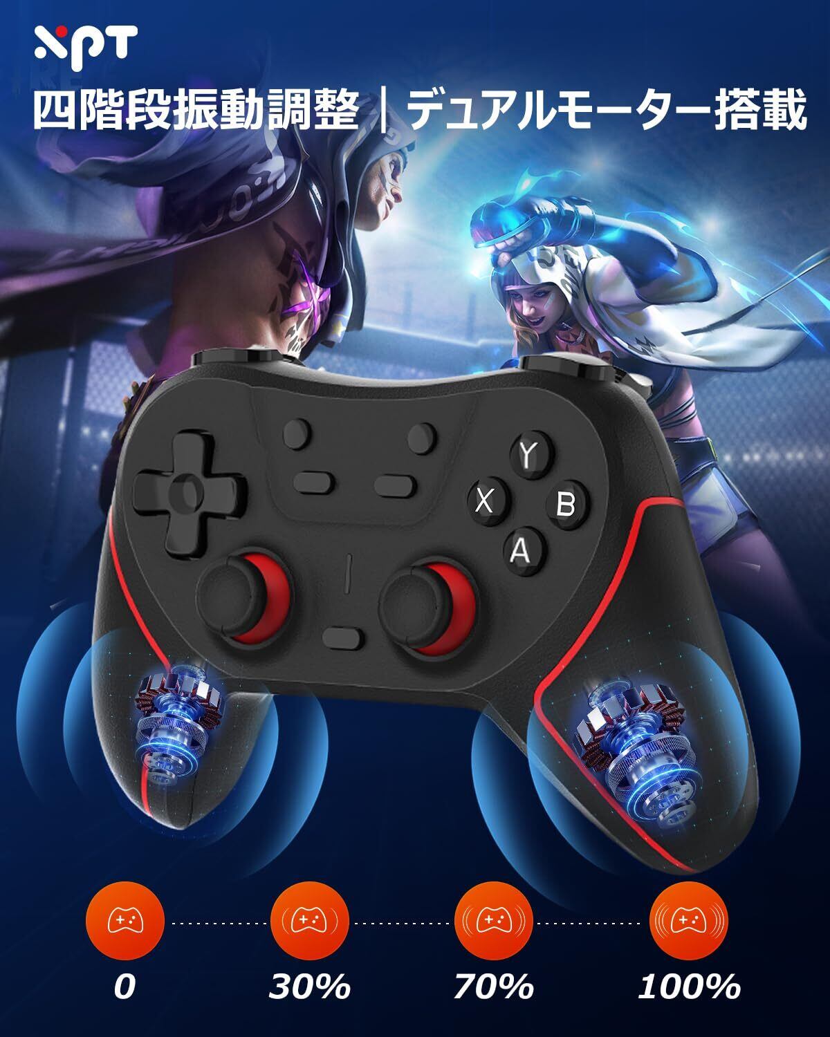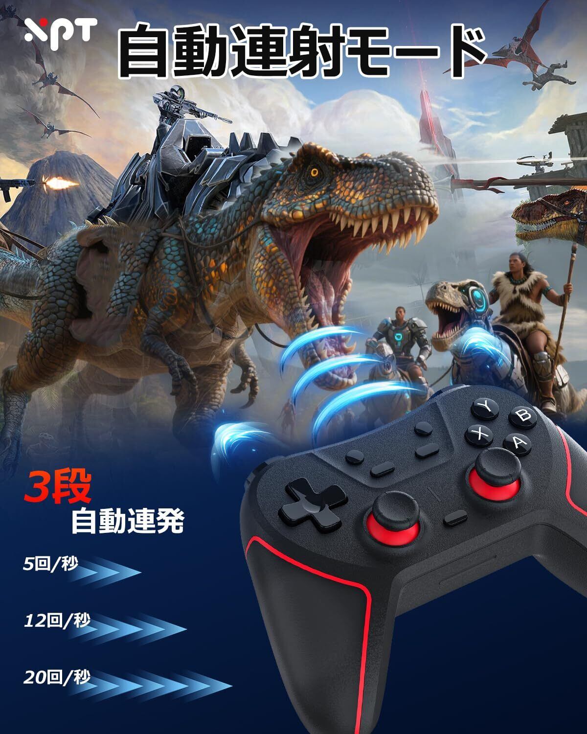 Turbo連射機能・4段HD振動機能---スイッチコントローラーはTURBO連射機能を搭載し、ゲームに応じて連射機能(5回/秒、12回/秒、20回/秒)を設定することで、ベストマッチを狙うことができます。シューティングゲームをする場合は、連射機能を使うことで勝率を上げることができます。内蔵3D振動モーターを搭載し、0%(なし)、30%(弱)、70%(中)、100%(強)の4つの振動モードを搭載し、アクションに合わせて振動を調整することができます。 優れた振動により、臨場感と没入感を味わいながらゲームを楽しめます;