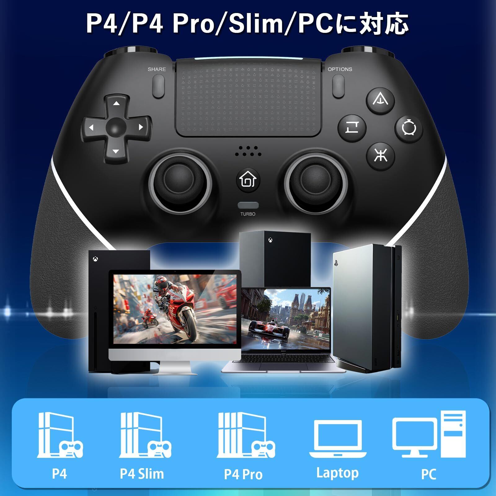 【2025年新登場&高い交換性】本製品はSungale2025年新発売のP4用無線コントローラーです。マクロ編集機能、2つの背面ボタン、自動連射機能、Bluetooth5.0接続、大容量1000mAhバッテリー搭載、リセットホールなど、様々な機能が今までと異なるゲーム体験が楽しめます。高い交換性を持つ、P4/P4 Pro/Slim/PC(Windows7/8/10)に対応できます。本製品は️ホールスティック使用、従来のスティックよりさらに安定し、接続安定かつ遅延無し、ゲームには最適です。さらに、️イヤホンジャック搭載、スピーカー内蔵、ピンホールリセット機能、最高なゲーム体験を味わえます。※本製品はPS5には対応できません、PS5での使用について対象外です。